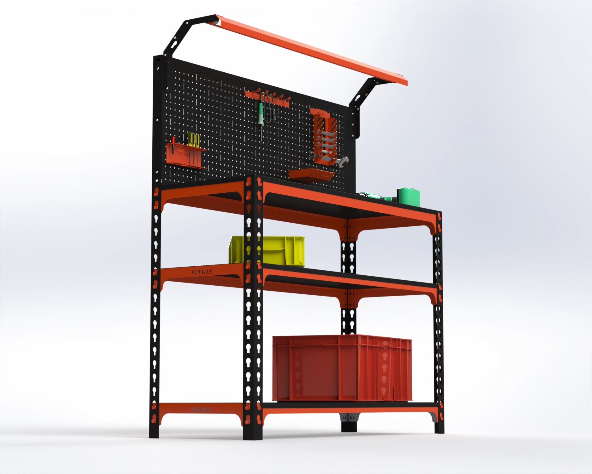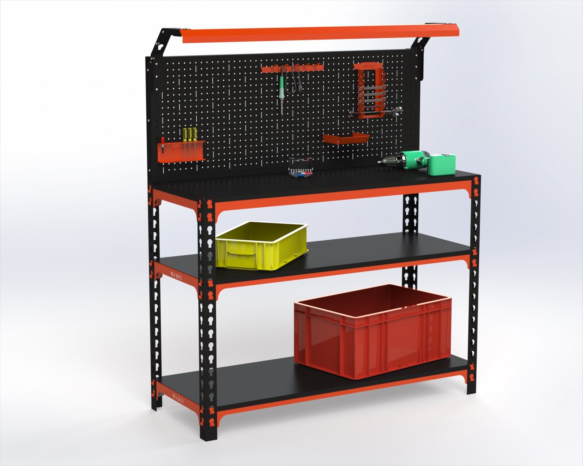 Верстак Metalex серия SUN 950х1000х500 (2-е полки, + перфопанель с комплектом освещения) оранжево-чёрный интересное: