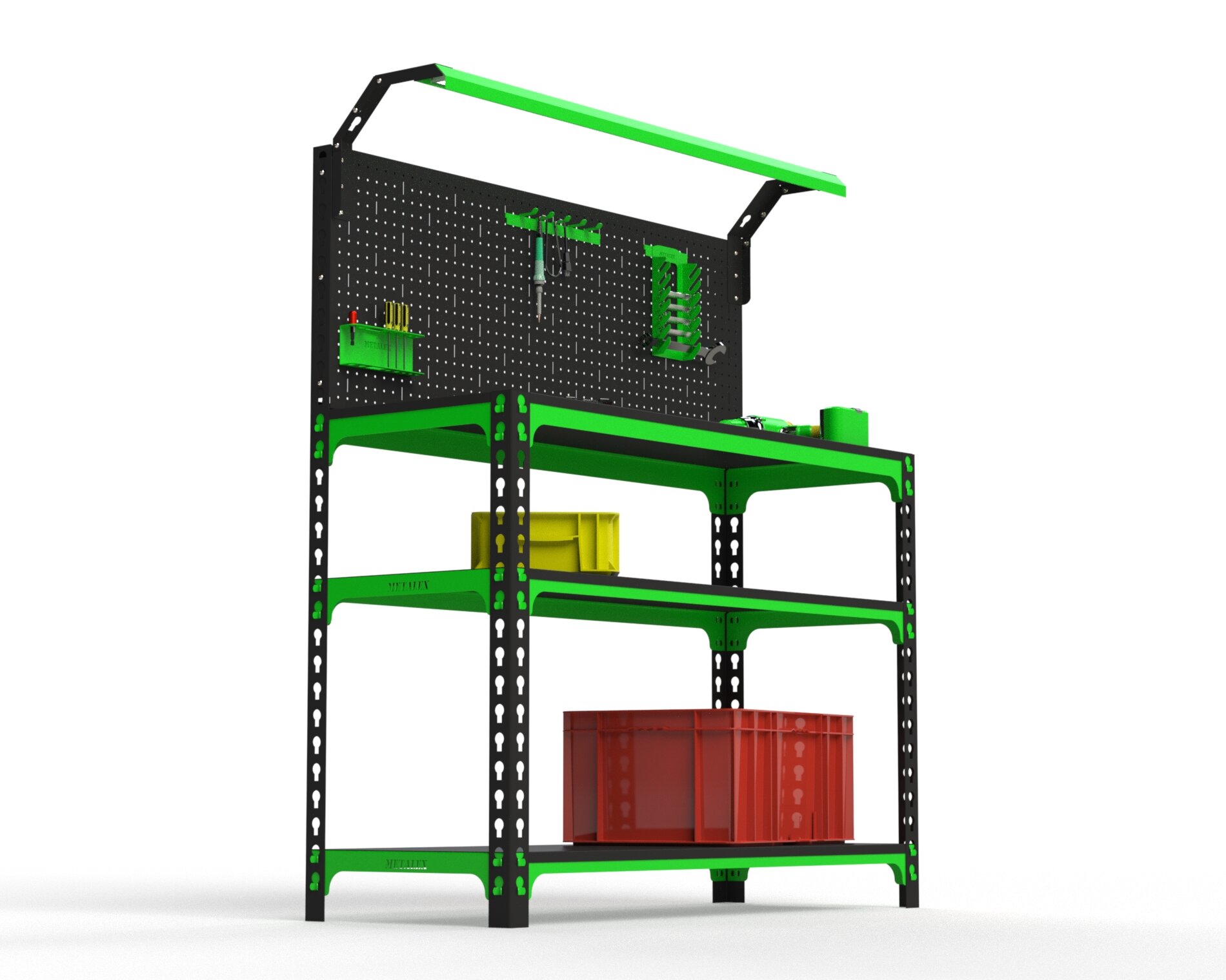 Верстак Metalex серия SUN 950х1100х600 (2-е полки, + перфопанель с комплектом освещения) интересное: