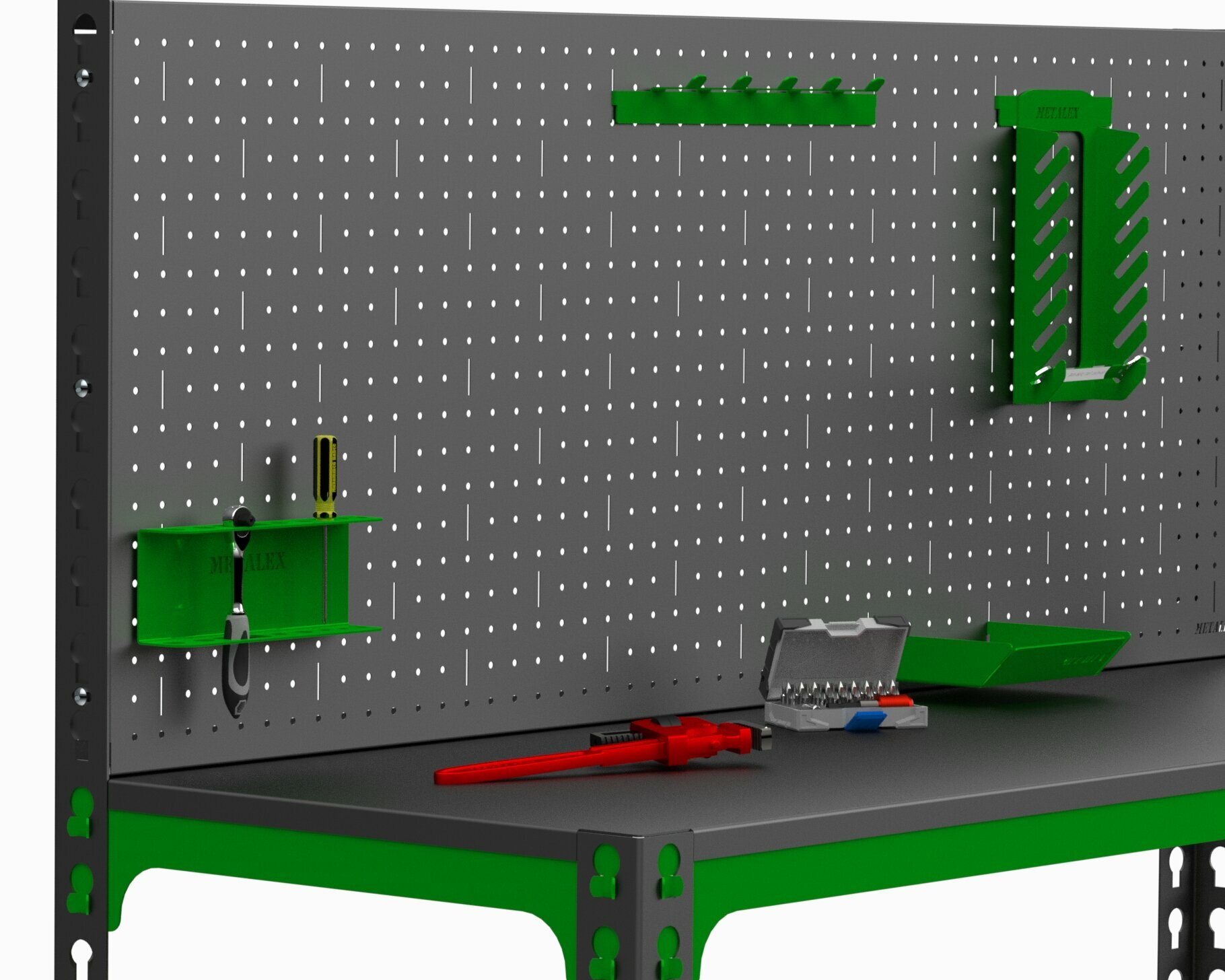 Купить Стол-верстак Metalex 950х1000х600 (две полки) + перфопанель с комплектом аксессуаров