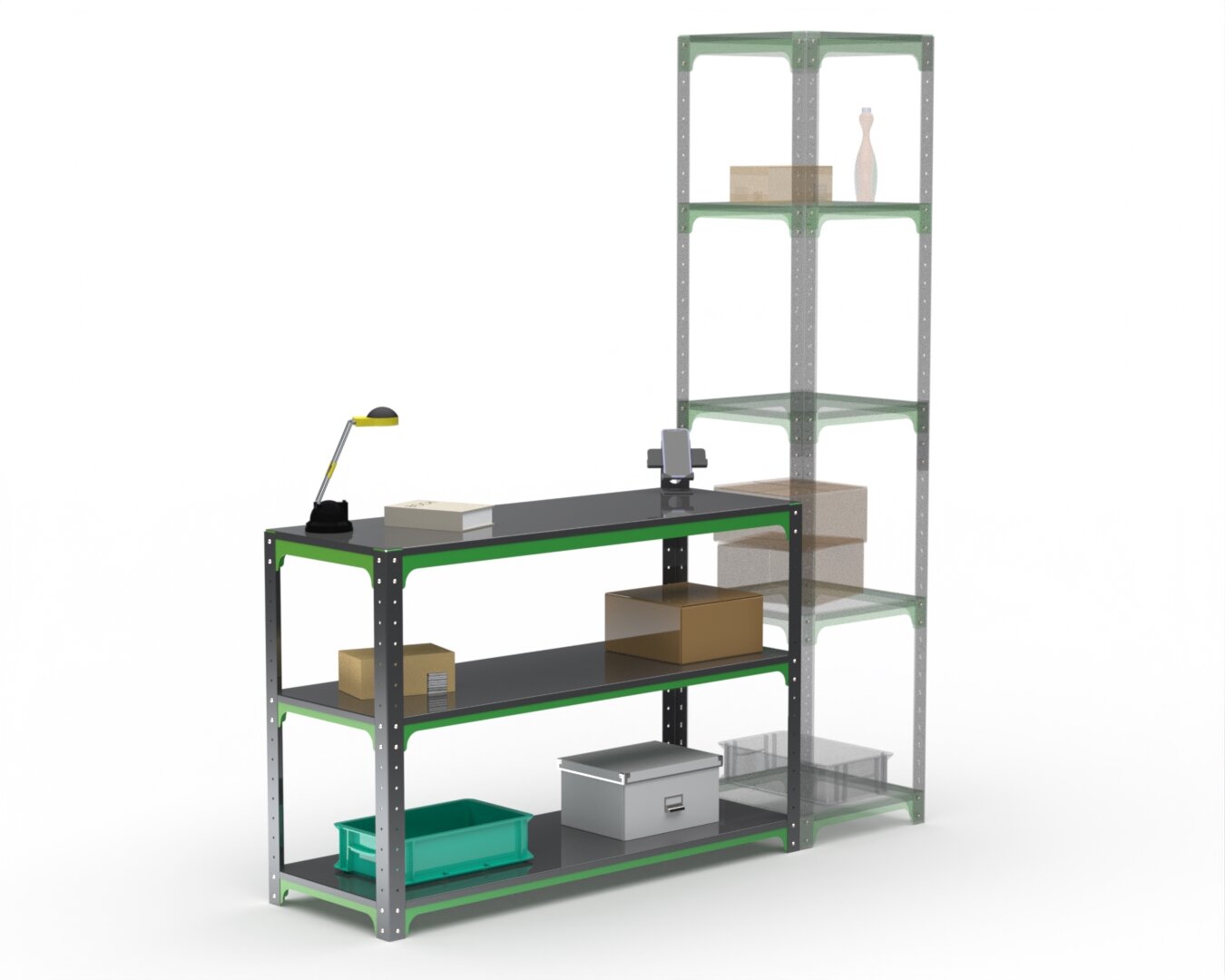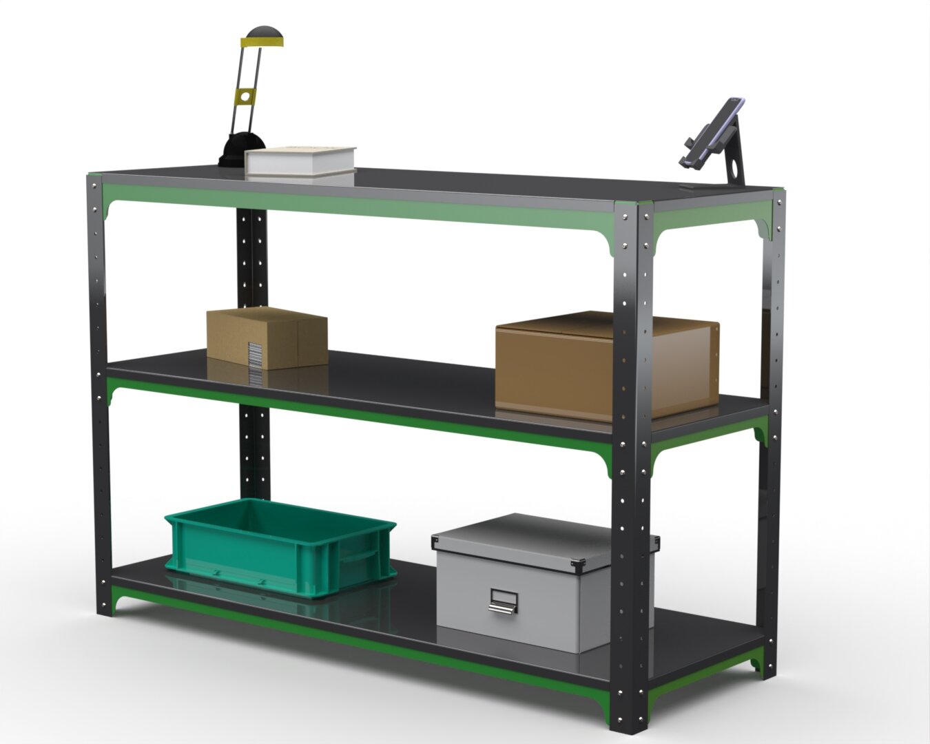 Купить Стол-верстак Metalex серия KIT 950х1500х600 (две полки) (серо-зеленый)