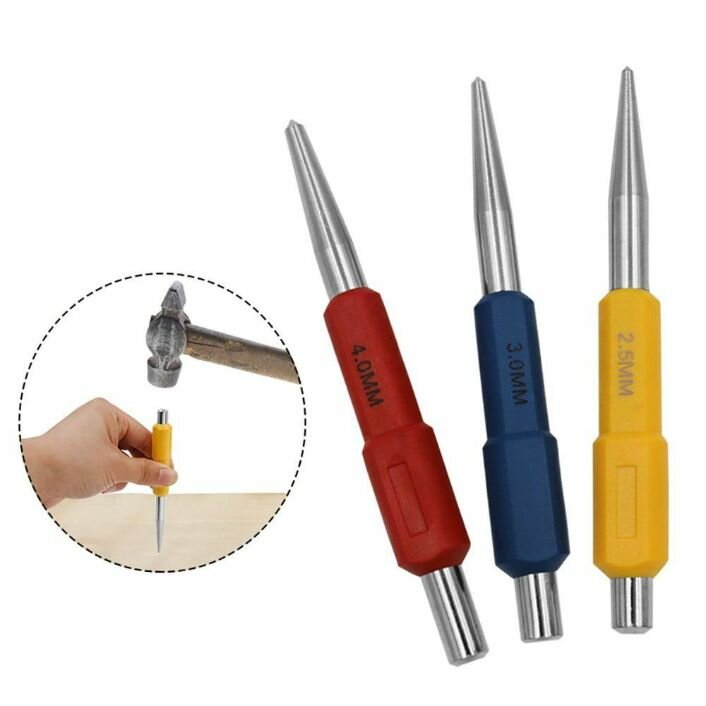 Кернер по металлу набор 3 штуки, бородок слесарный, головки 2,5; 3; 4 мм интересное: