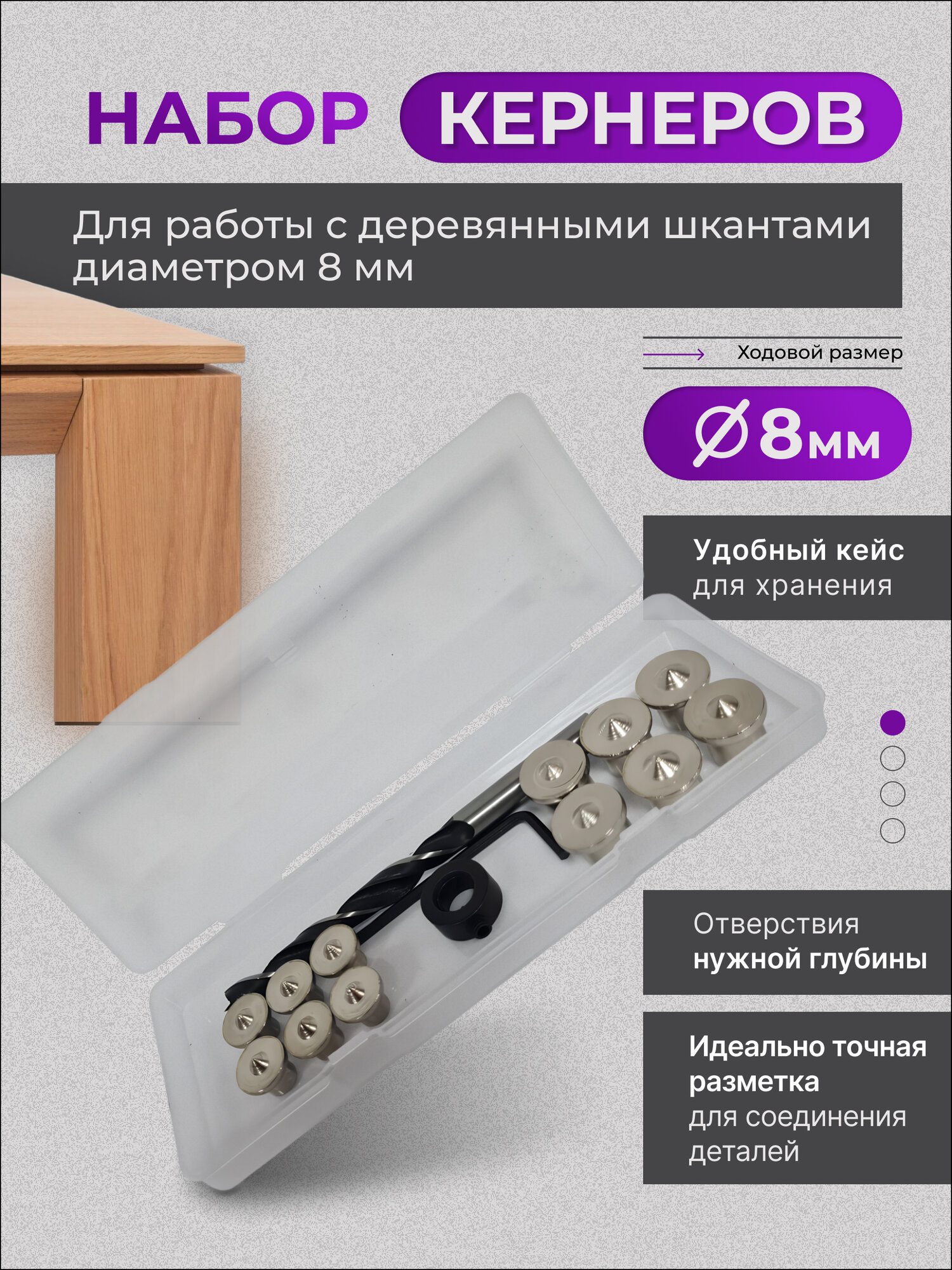Набор кернеров 8 мм (для деревянных шкантов 8мм) в пластиковом кейсе интересное: