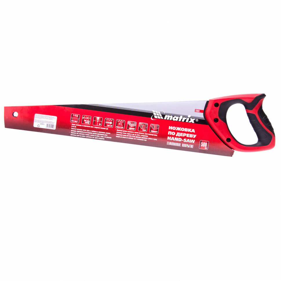 Ножовка по дереву, 500 мм, 7-8 TPI, зуб-3D, каленый зуб, тефлоновое покрытие полотна, двухкомпонентная рукоятка Matrix (23551)