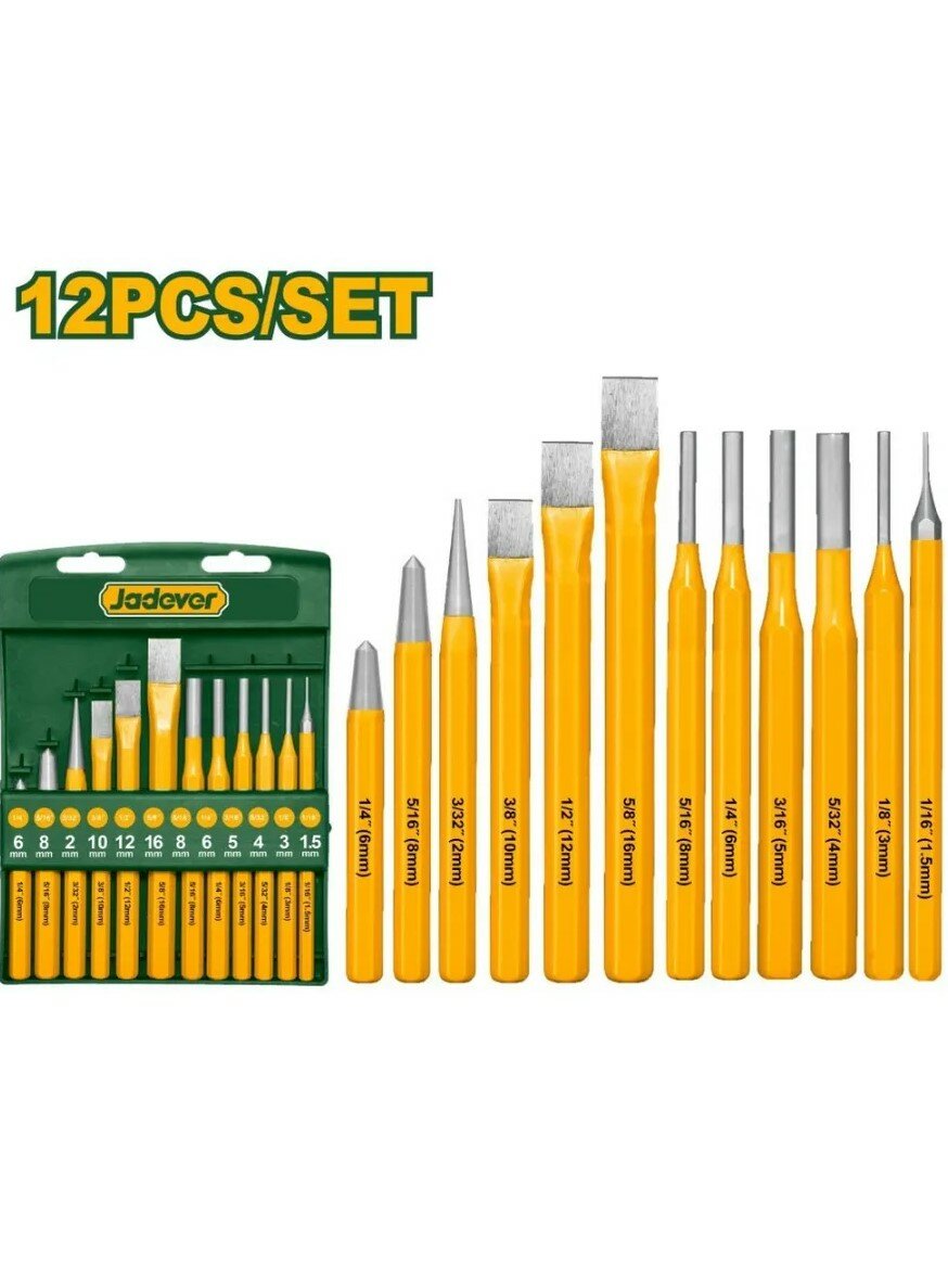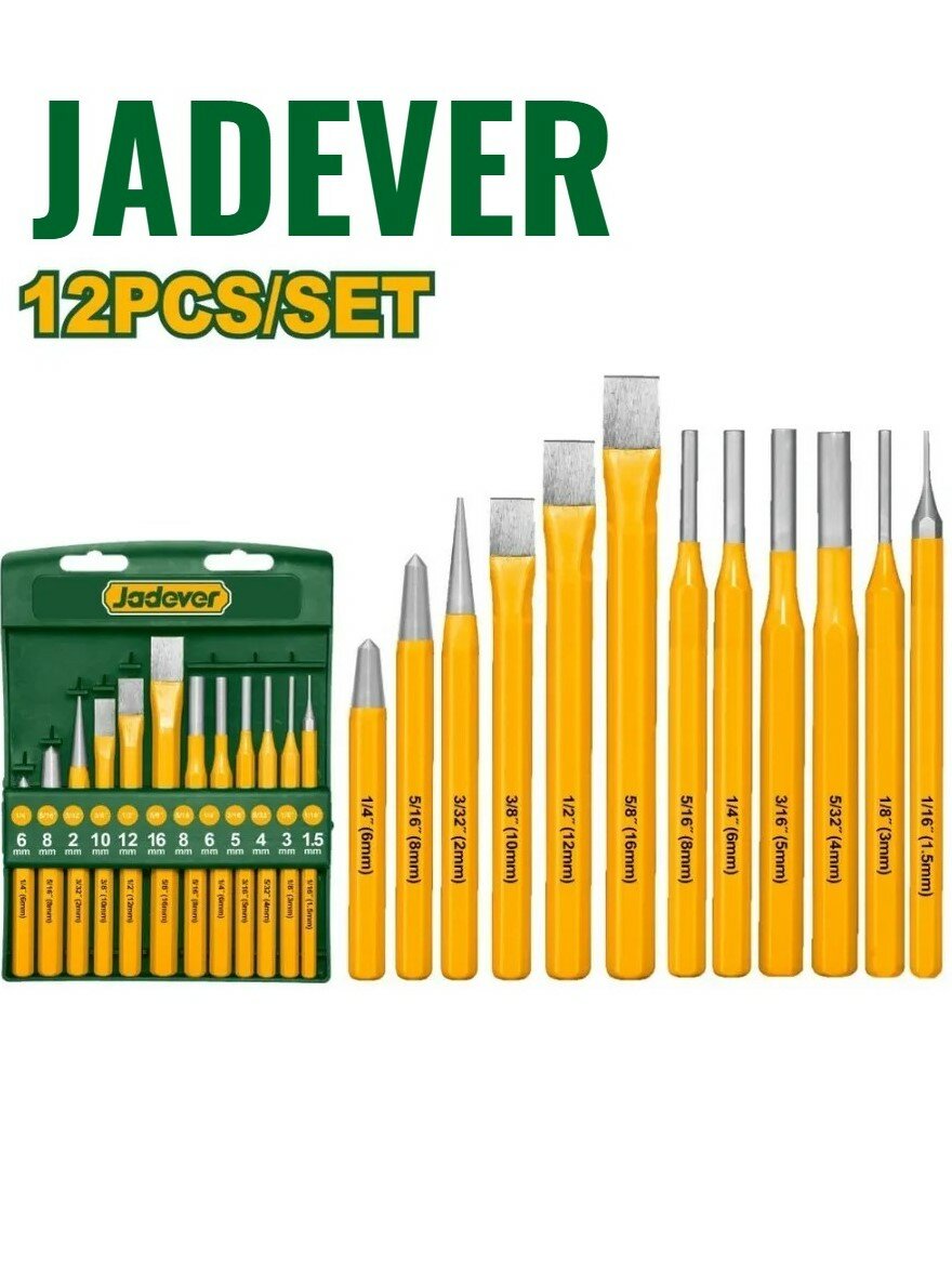 Купить Зубило ручное и кернер пробойники JADEVER набор 12 штук по металлу