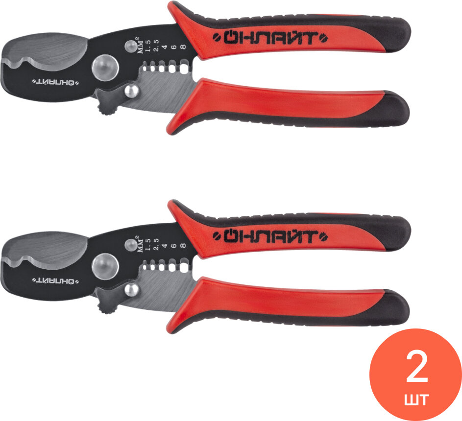 Купить Ножницы кабельные онлайт OHT-Nk02-2v1 для резки и снятия изоляции многофункциональные, 2 в 1, длиной 170мм / кабелерез (комплект из 2 шт)
