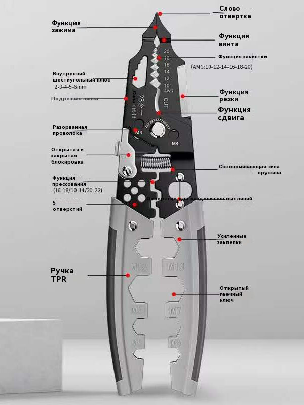 Комбинированные щипцы для снятия проводов с отверткой, для резки кабелей интересное: