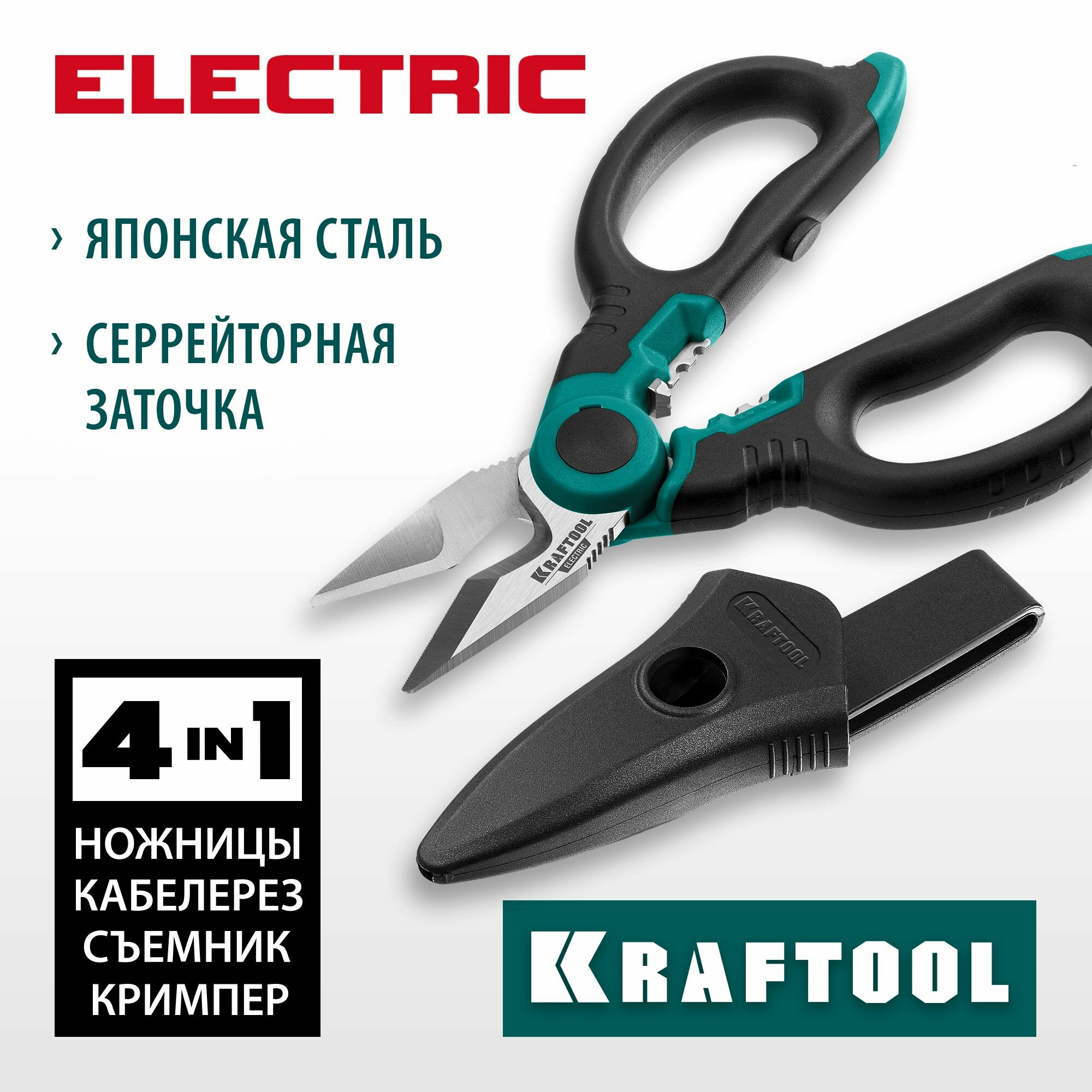Купить Ножницы электрика KRAFTOOL, 160 мм, в чехле 4-в-1: кримпер, съемник, кабелерез