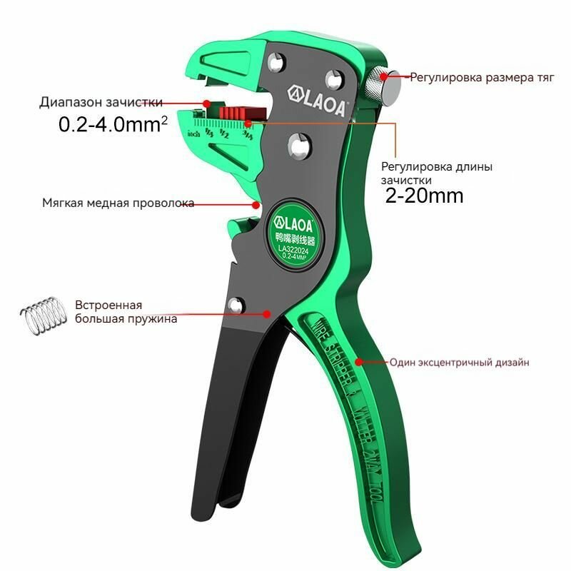 MIIDEE Стриппер автоматический для снятия изоляции, LAOA, зачистки проводов 0.2 - 4 мм, регулировка длинны, для электромонтажа интересное: