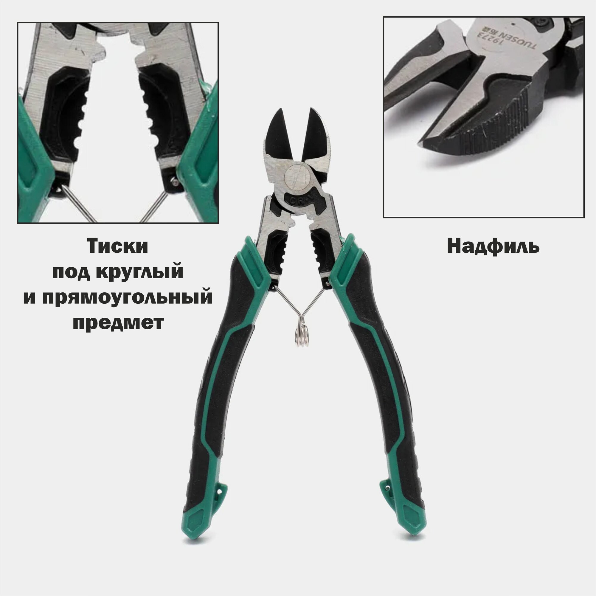 Многофункциональные бокорезы 7 в 1 Tuosen 19273/ инструмент кусачки, надфиль, обжим, намотка, зачистка, зажим, тиски интересное: