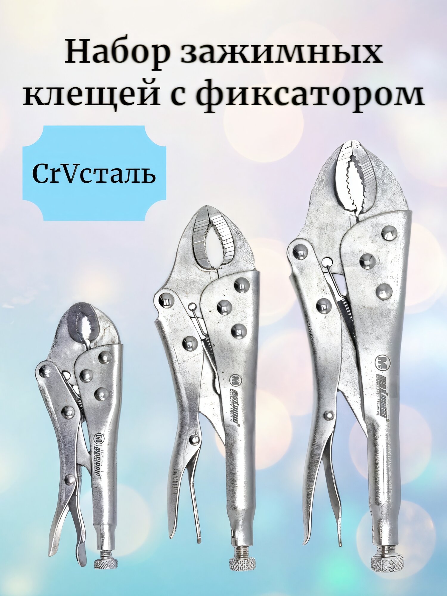 Зажимные клещи, с фиксаторами, из инструментальной стали, серебристый, 3шт интересное: