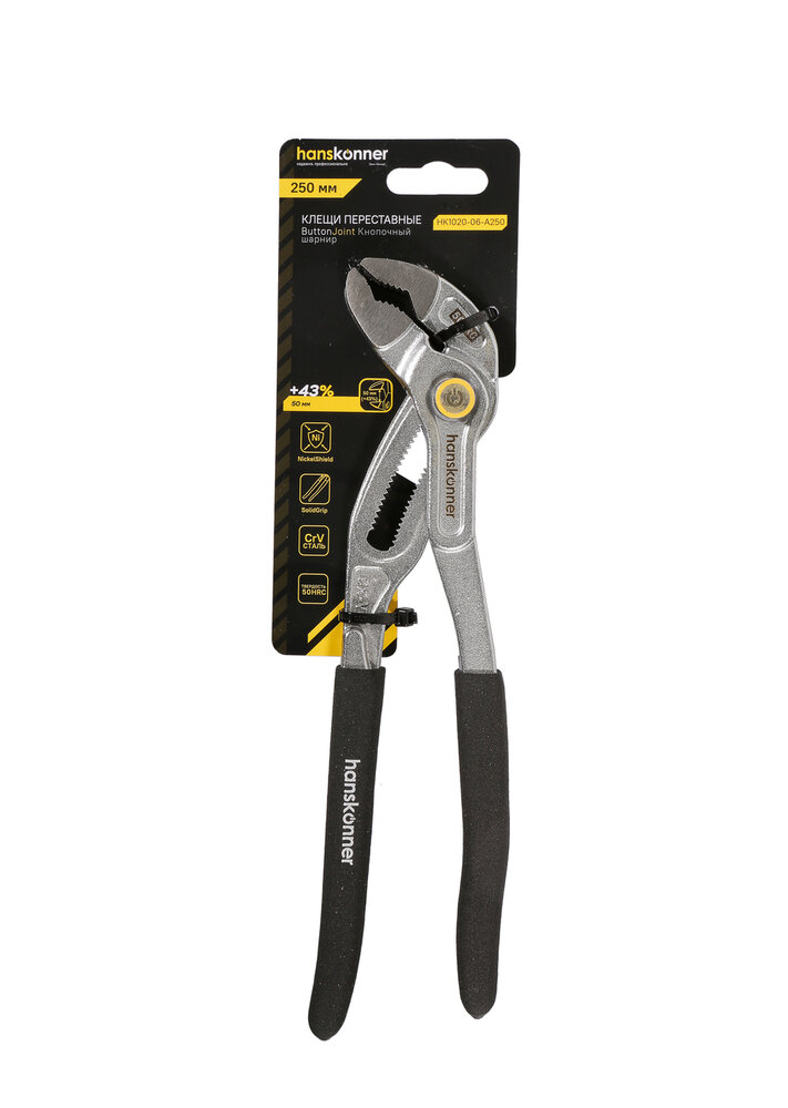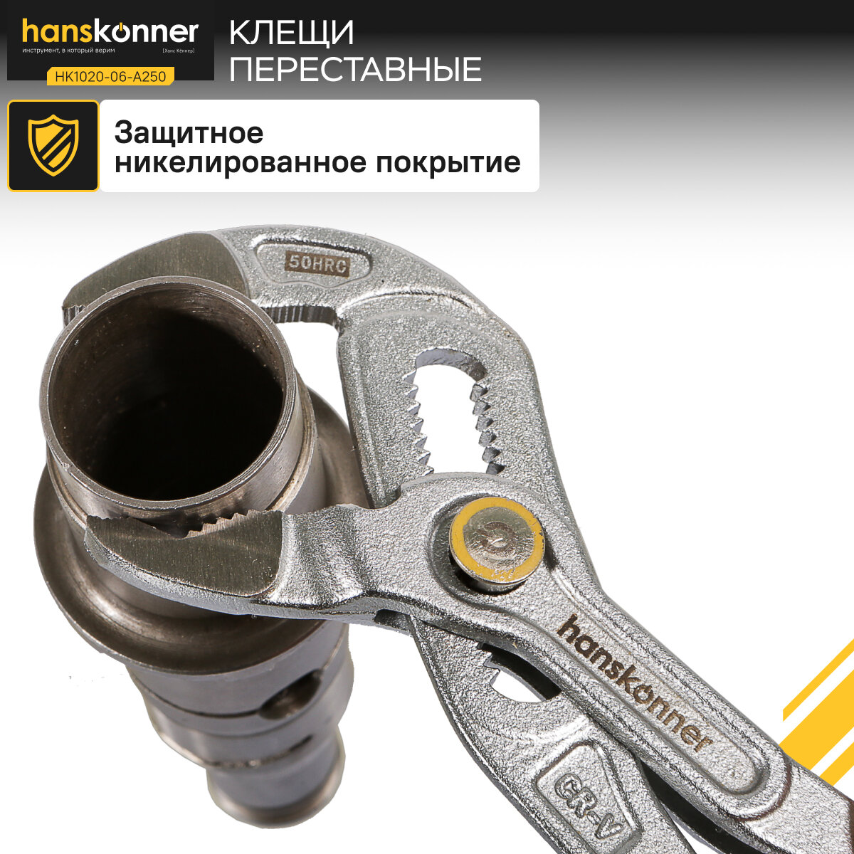 Купить Клещи переставные Hanskonner HK1020-06-A250 250мм, CrV, кнопочный шарнир, раскр. губ. 50мм(>43%)