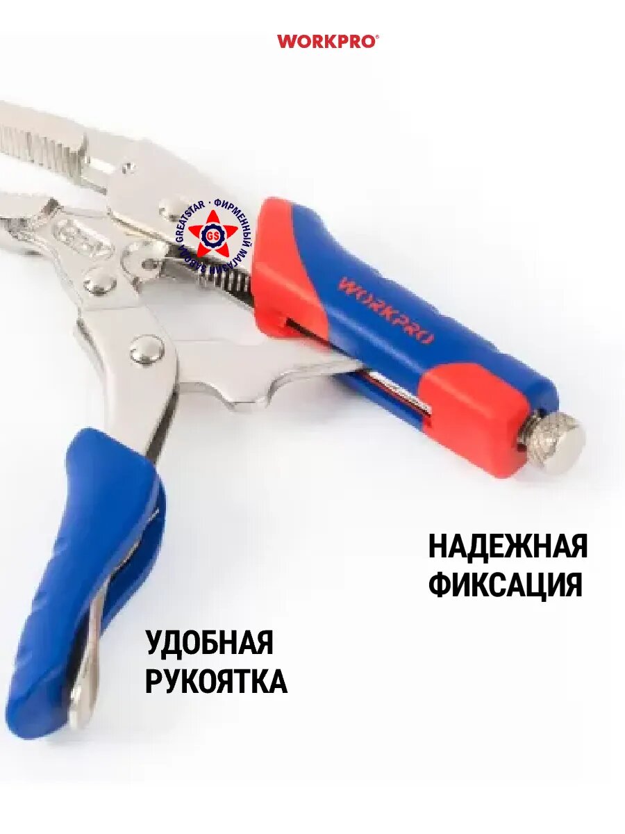 Зажимные клещи 165 мм, хромванадиевая сталь W031093, WORKPRO, цвет синий/красный интересное: