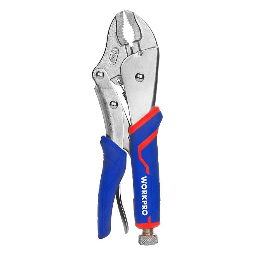 Клещи зажимные 180 мм с изогнутыми губками, WP231073, WORKPRO, цвет синий/красный