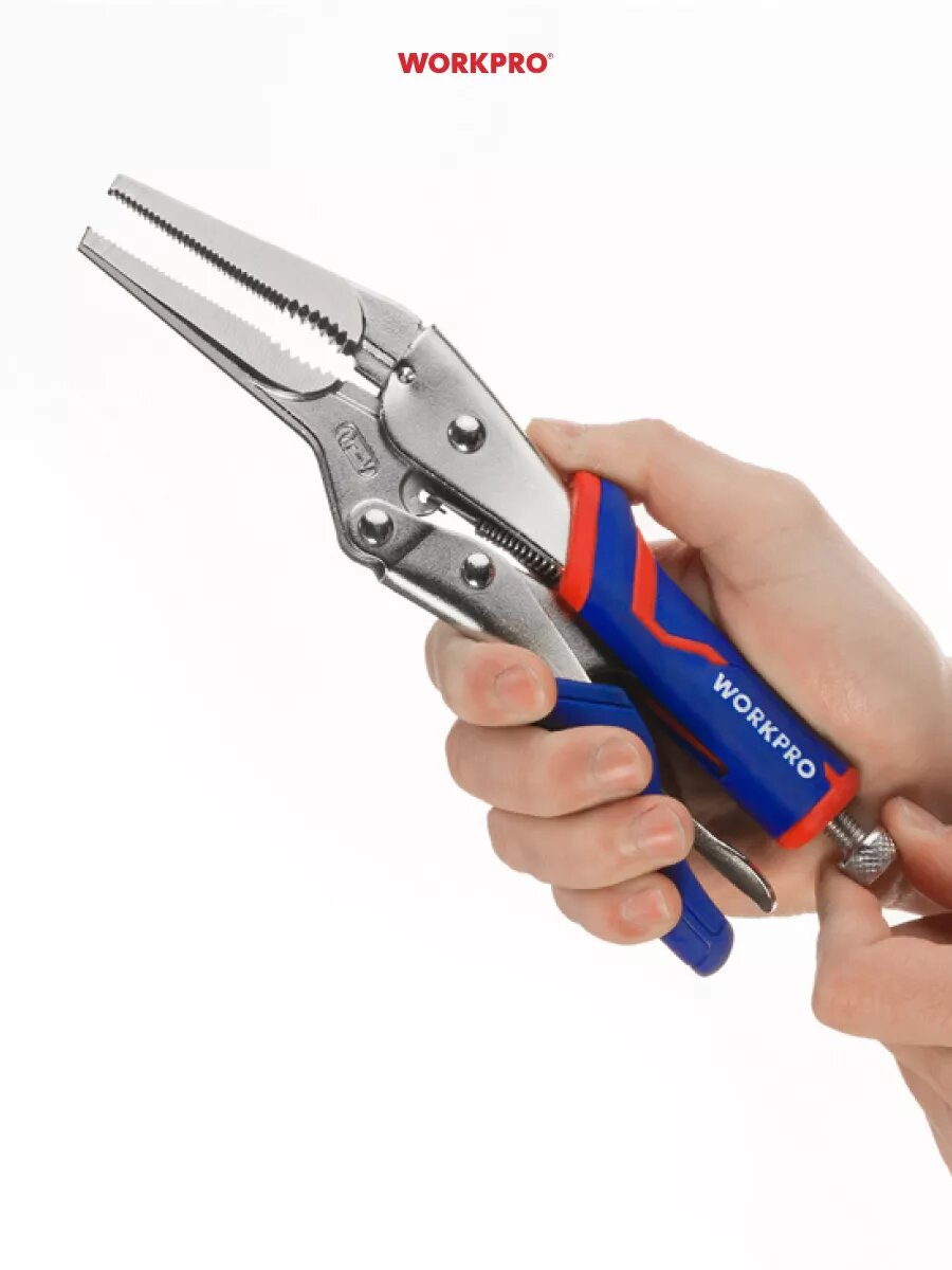 Клещи зажимные 230 мм с удлиненным захватом, WP231076, WORKPRO, цвет синий/красный интересное: