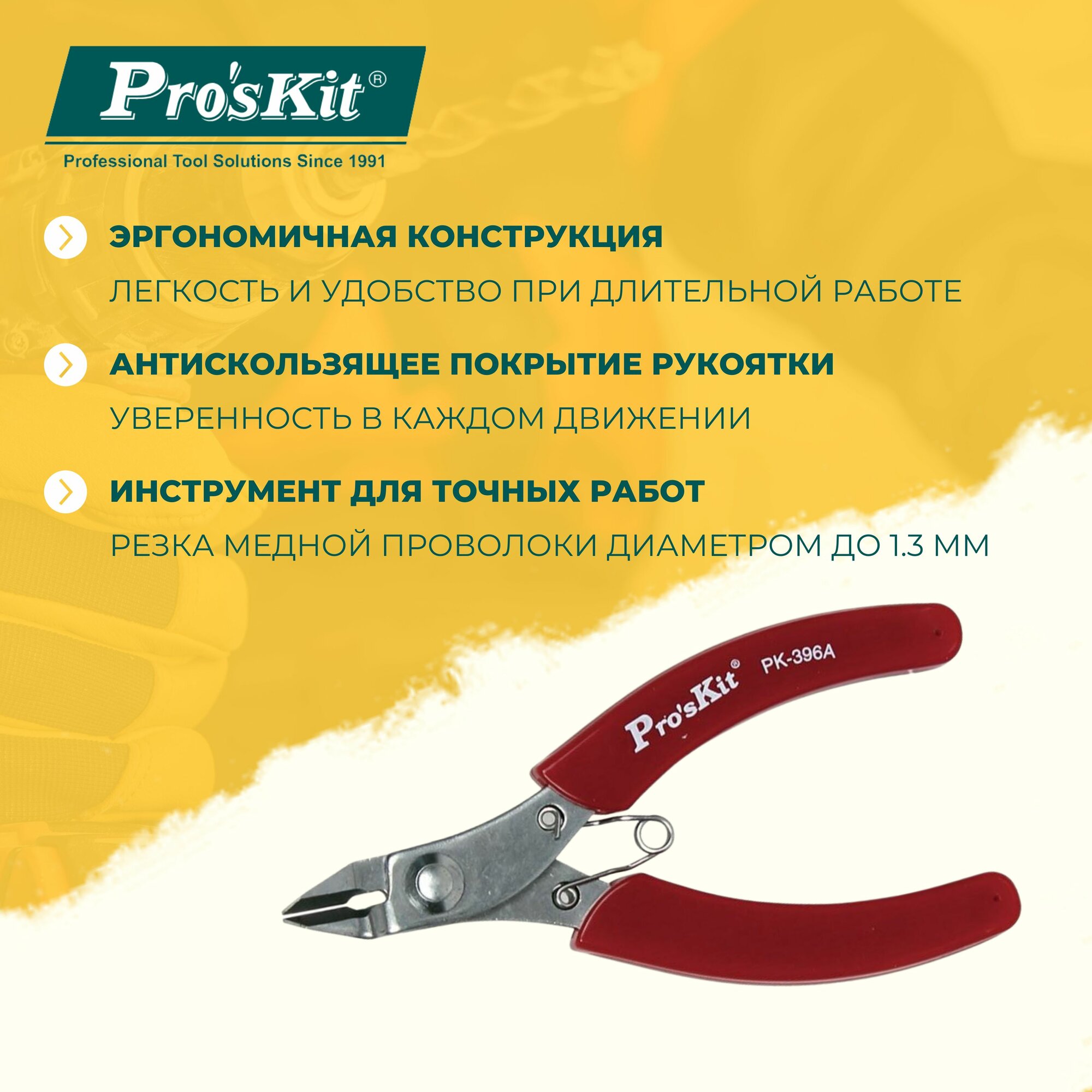 Купить Кусачки диагональные 1PK-396A PROSKIT с возвратной пружиной, 110 мм, резка медной проволоки диаметром до 1.3 мм