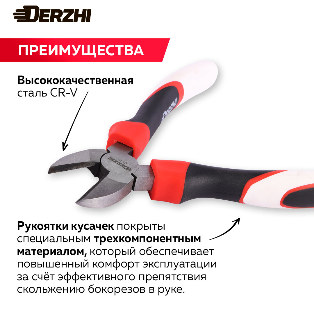 Бокорезы DERZHI, длина 180мм, легированная сталь, трехкомпонентные рукоятки интересное: