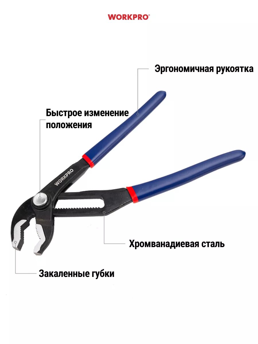 Клещи зажимные, набор 2 шт WP201005, WORKPRO, цвет синий/черный интересное: