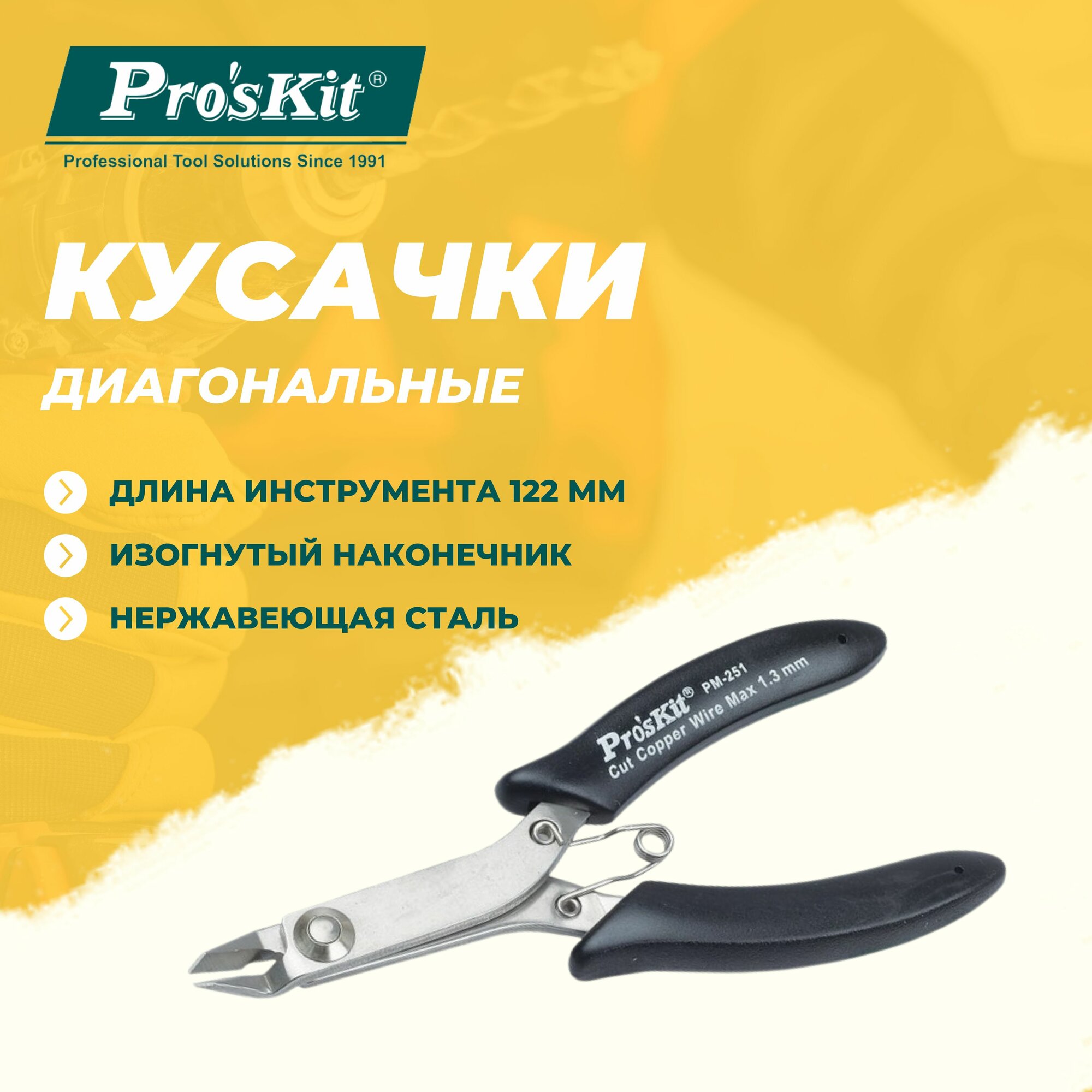 Купить Кусачки диагональные PM-251 PROSKIT с изогнутым наконечником, 122 мм, резка медной проволоки диаметром до 1.3 мм