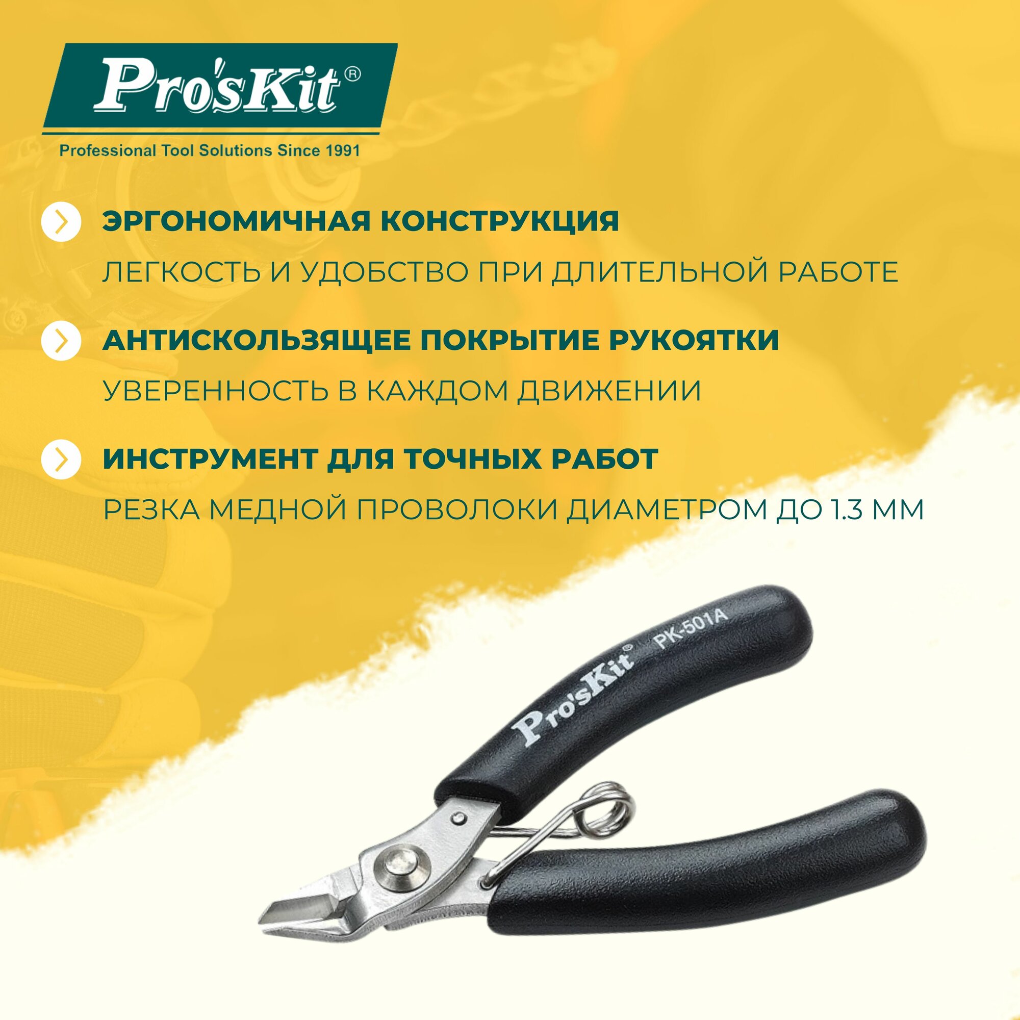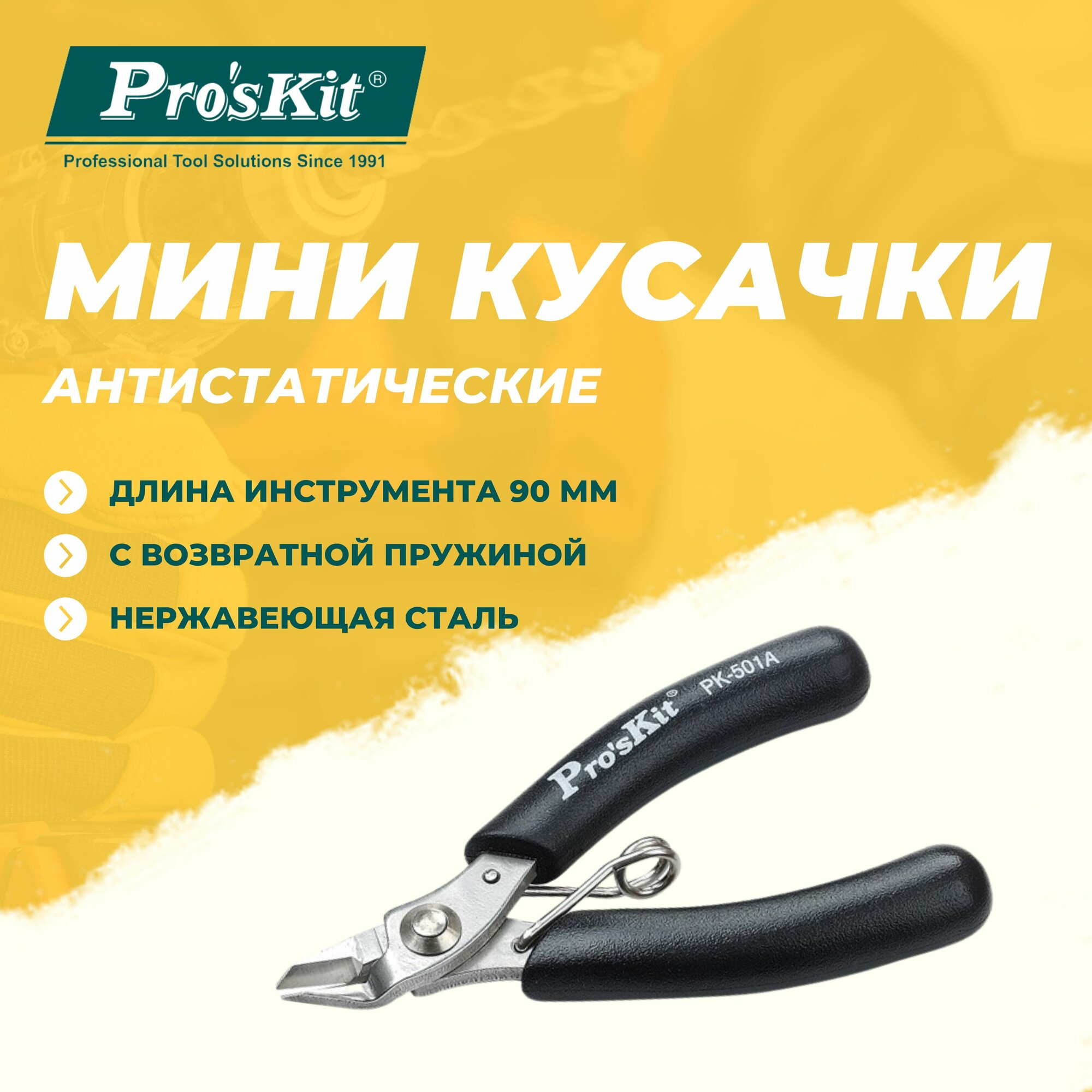 Купить Мини кусачки антистатические 1PK-501A PROSKIT с возвратной пружиной, 90 мм, резка медной проволоки диаметром до 1.3 мм