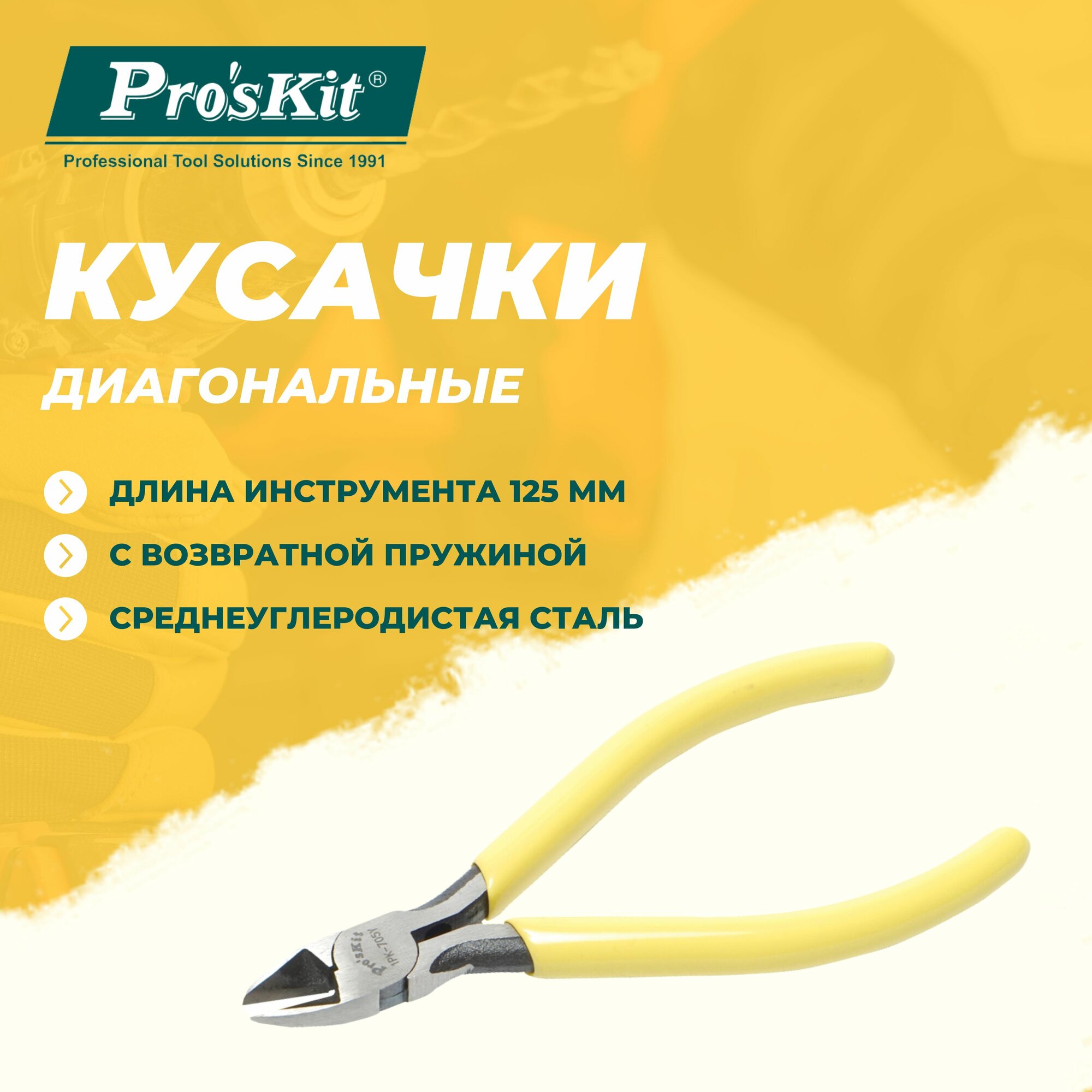 Купить Кусачки диагональные 1PK-705Y PROSKIT с возвратной пружиной, 125 мм, резка медной проволоки диаметром до 2 мм