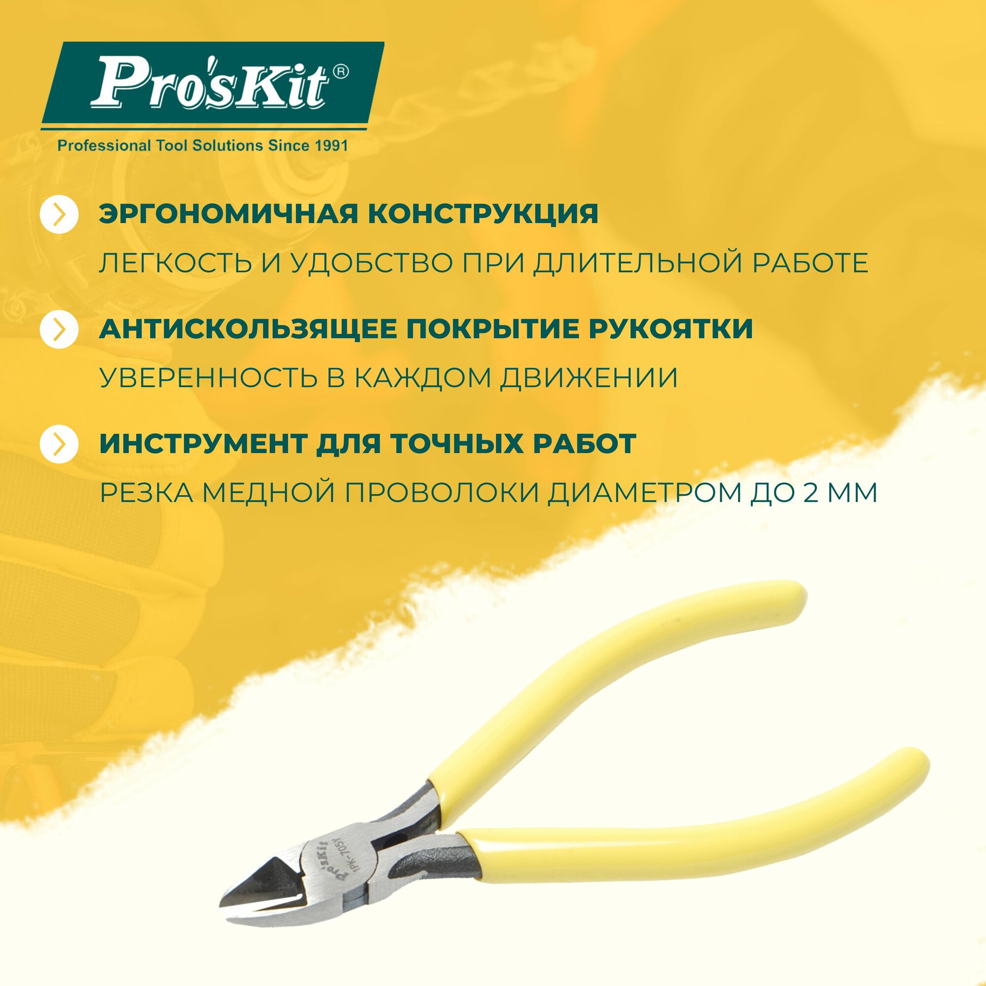 Кусачки диагональные 1PK-705Y PROSKIT с возвратной пружиной, 125 мм, резка медной проволоки диаметром до 2 мм интересное: