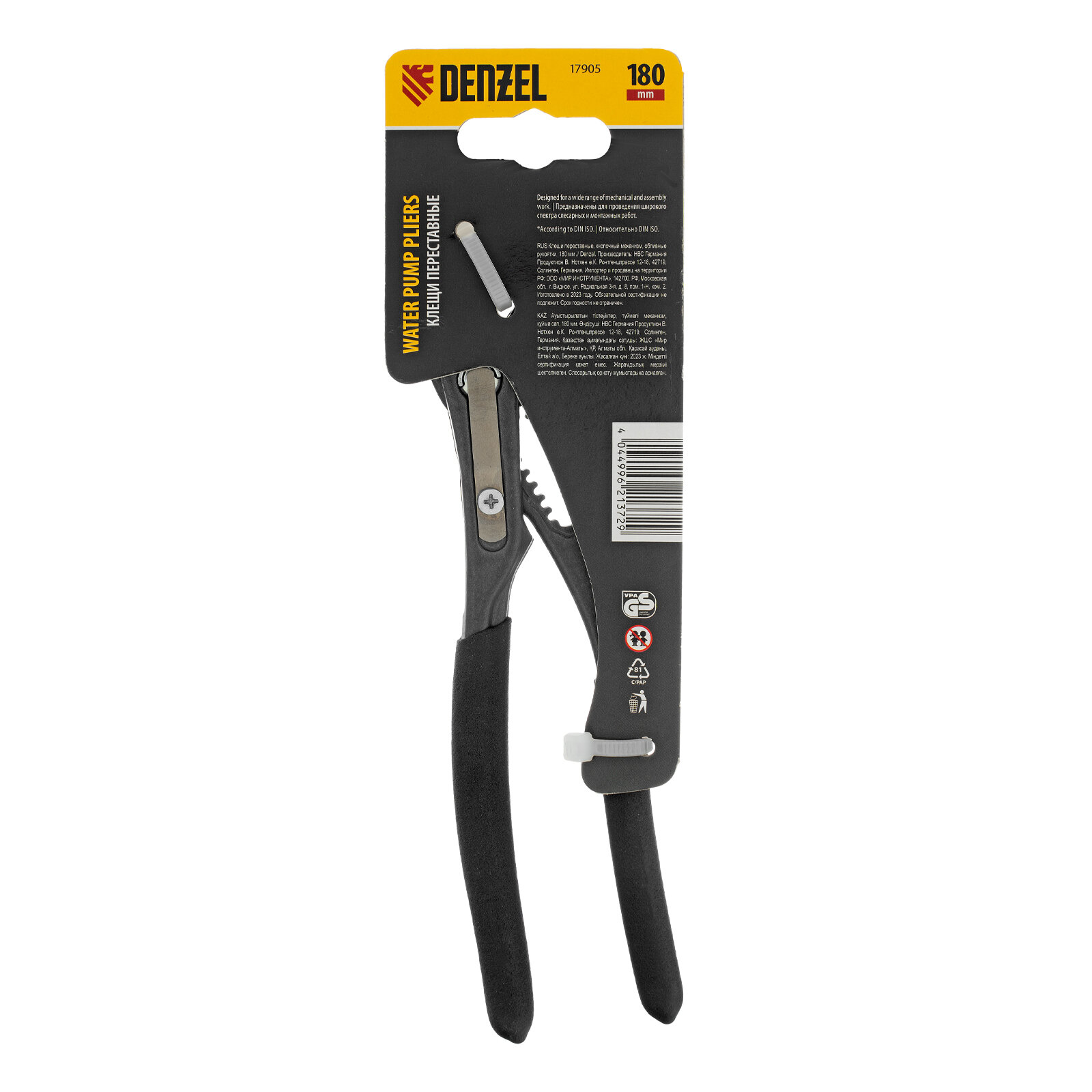 Клещи переставные Denzel кнопочный механизм, обливные рукоятки, 180 мм 17905 интересное: