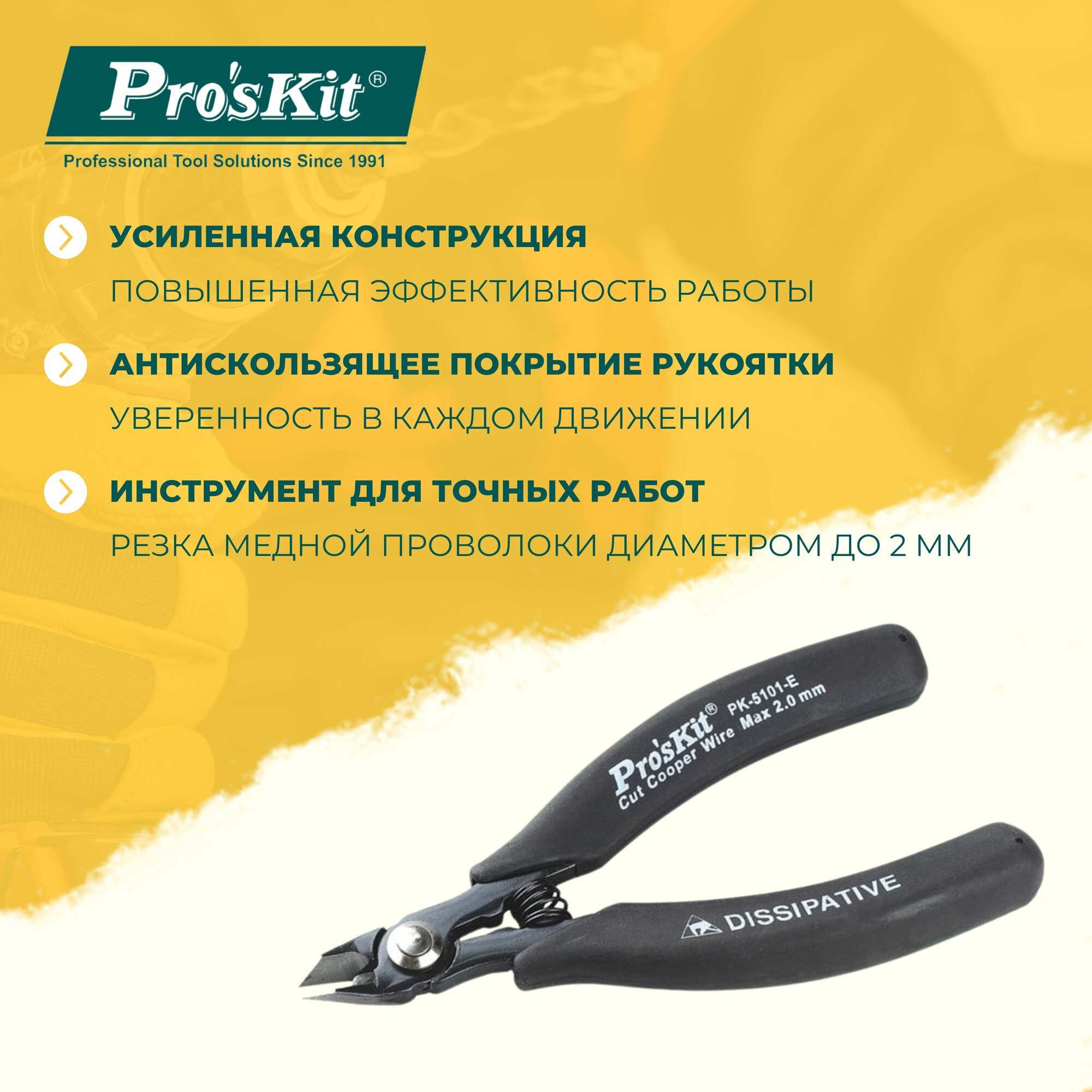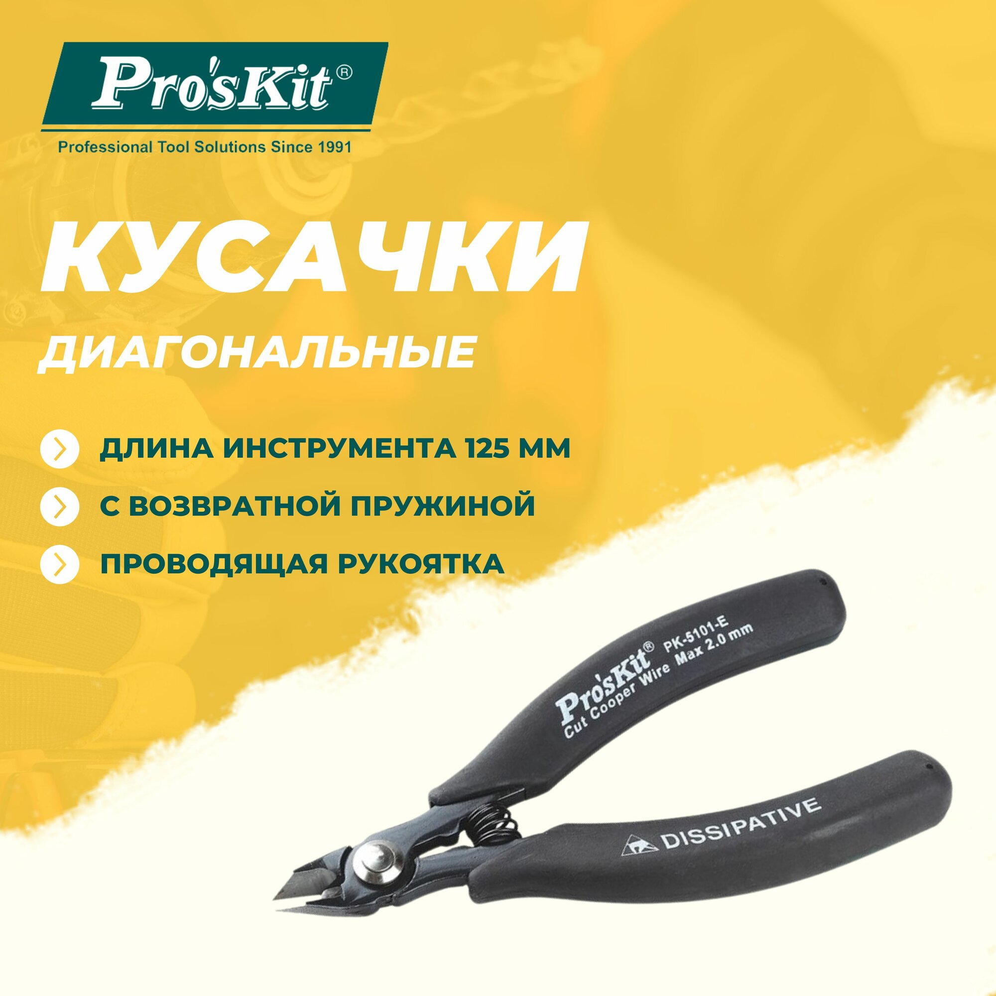 Кусачки диагональные 1PK-5101E PROSKIT с возвратной пружиной, 125 мм, резка медной проволоки диаметром до 2 мм интересное: