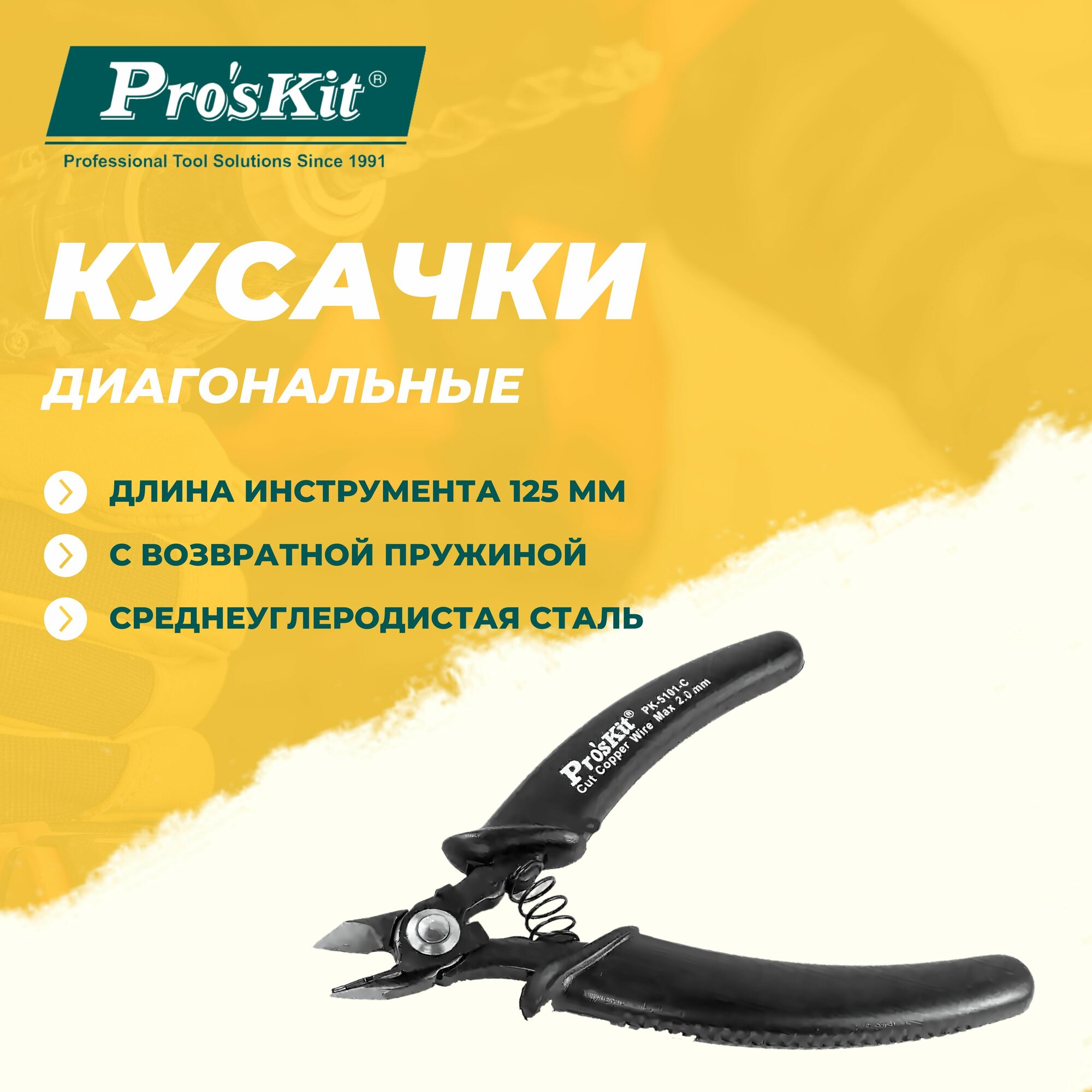 Кусачки диагональные 1PK-5101C PROSKIT с возвратной пружиной, 125 мм, резка медной проволоки диаметром до 2 мм интересное: