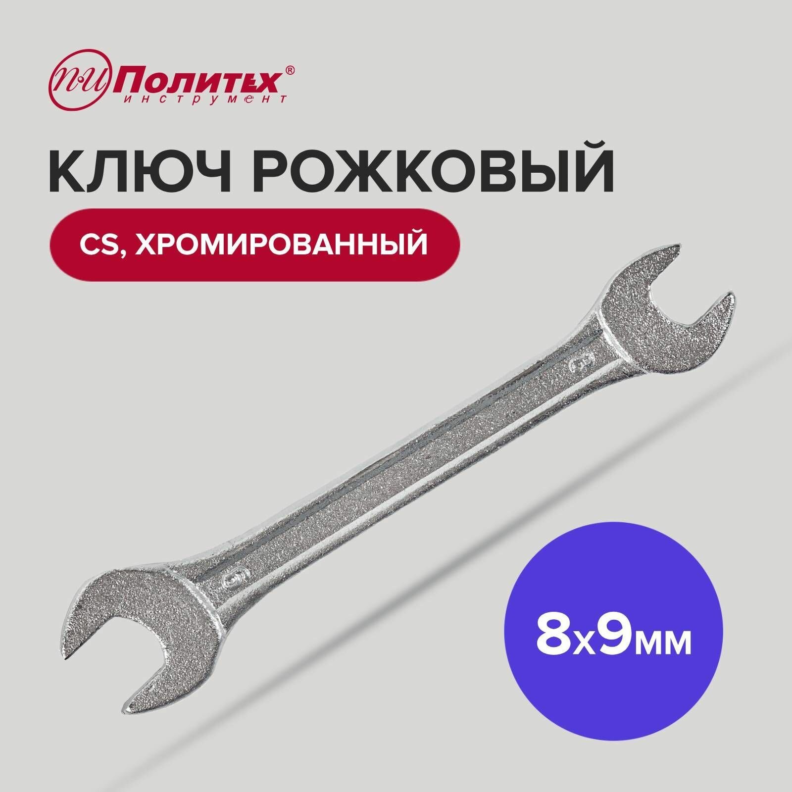 Купить Ключ рожковый CS хромированный 8 х 9 мм Политех Инструмент