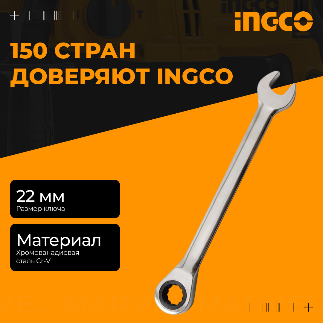 Ключ комбинированный трещоточный INGCO INDUSTRIAL HCSPAR221, 22 мм интересное: