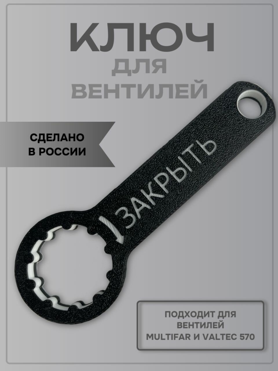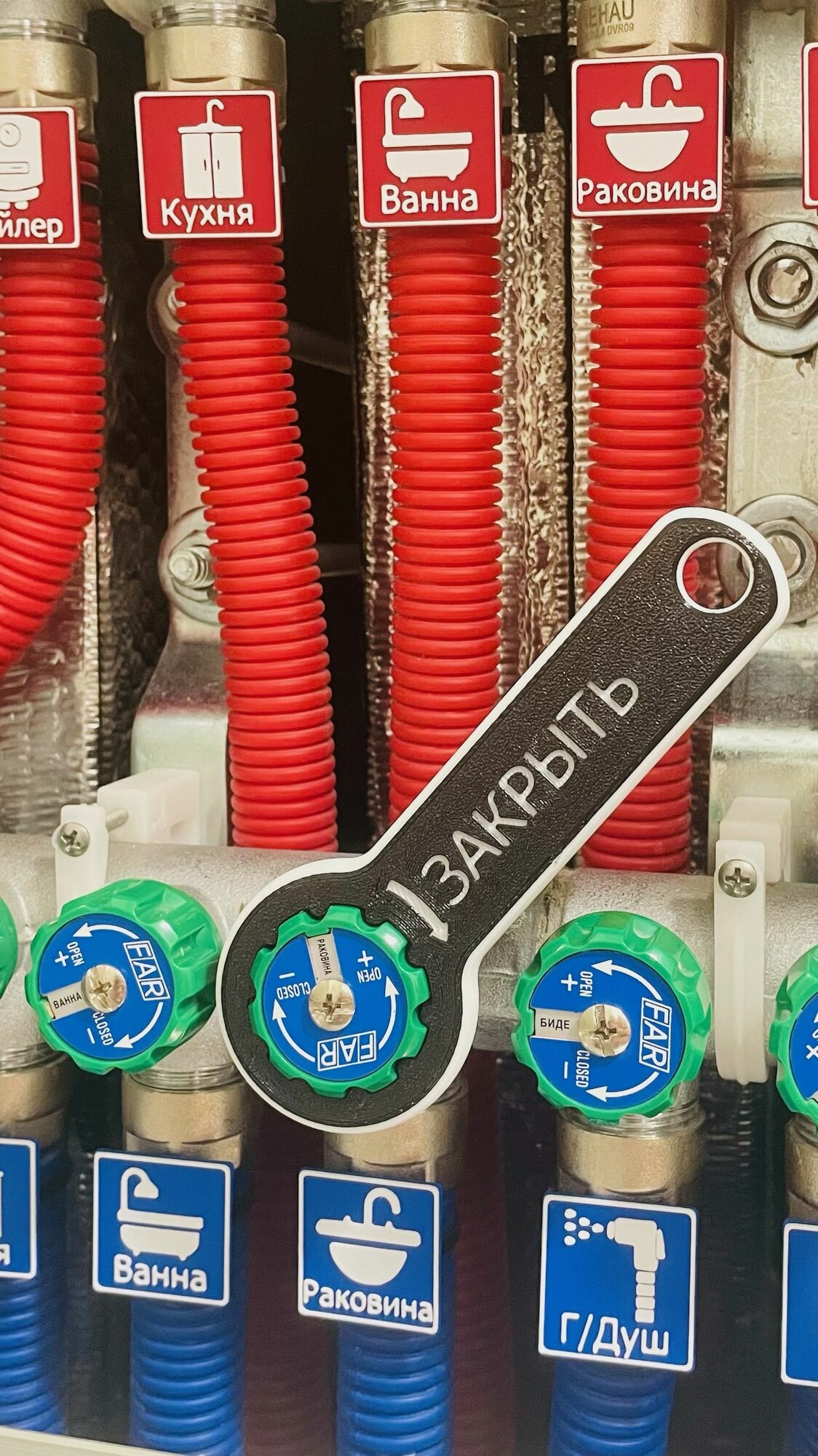 Ключ FabLab для вентилей для коллектора MultiFAR и Valtec 570, чёрный с надписью "закрыть" интересное: