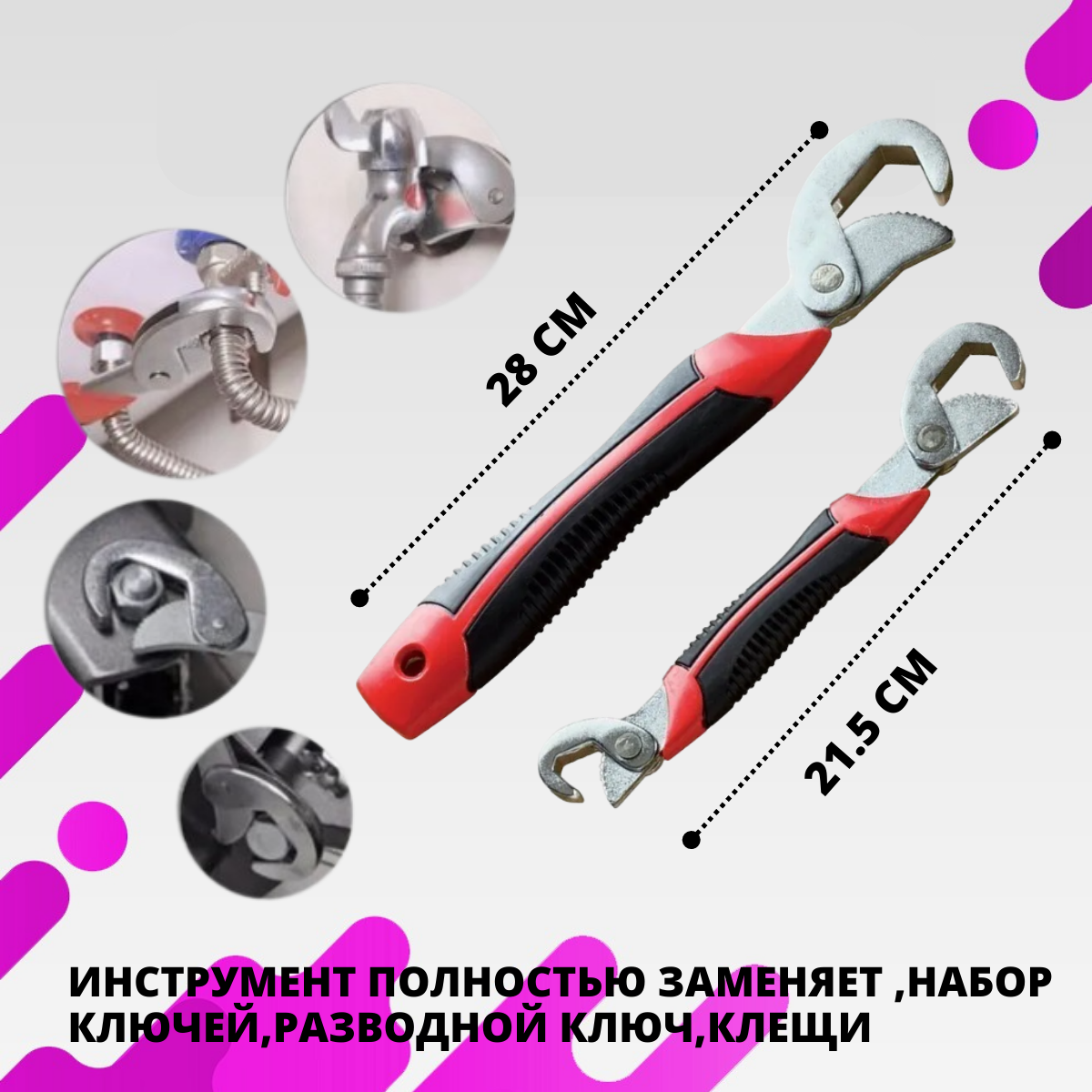 Ключи гаечные универсальные "Чудо Ключ Snap N Grip", комплект из двух самозажимных ключей интересное:
