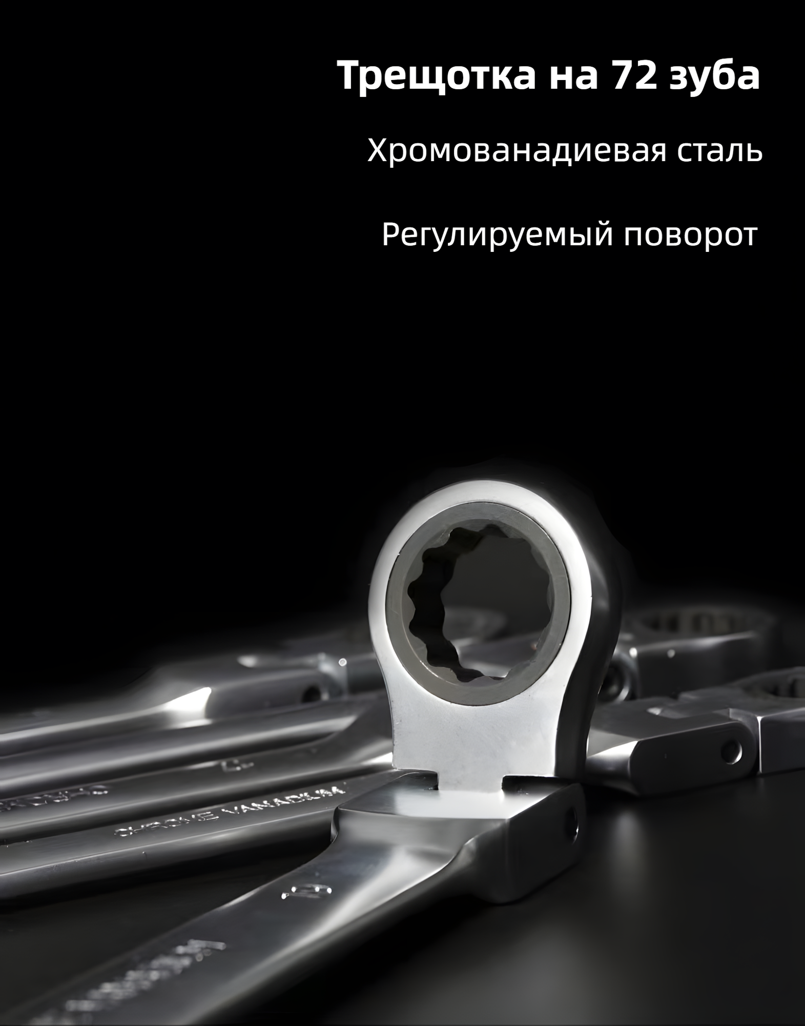 Набор из 6 комбинированных ключей с шарниром и храповым механизмом, в пластиковом подвесе, черный интересное: