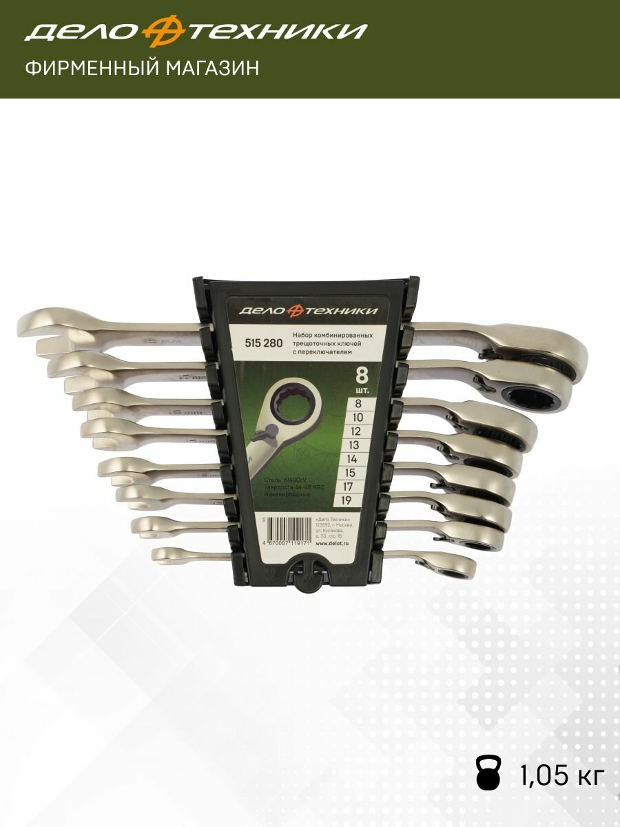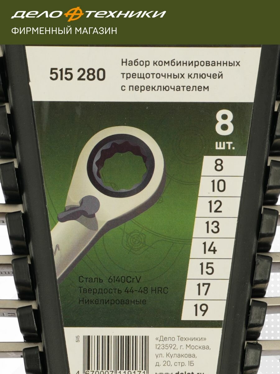 Набор ключей комбинированных трещоточных с переключателем 8 шт, холдер, Дело Техники, 515280 интересное: