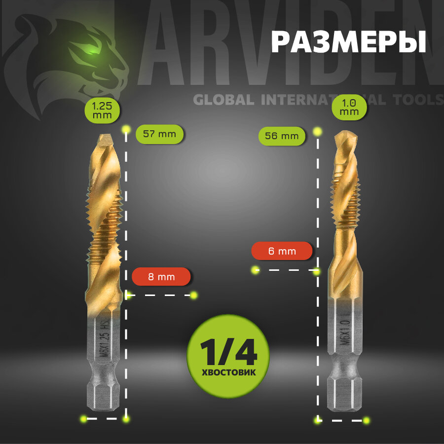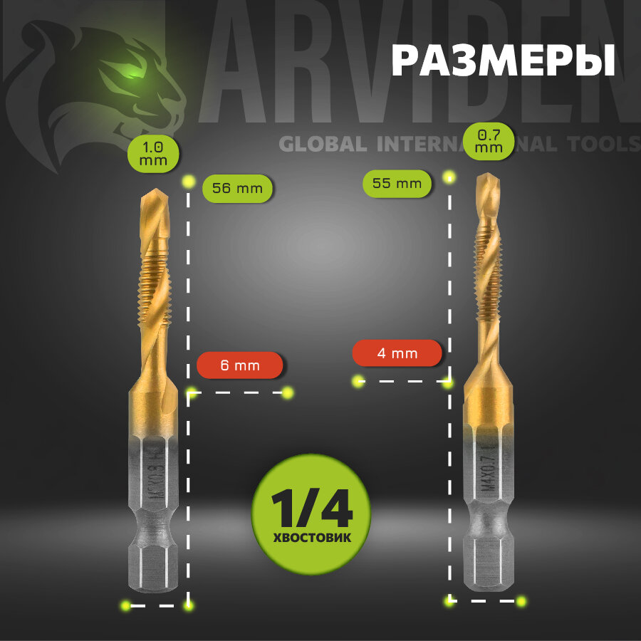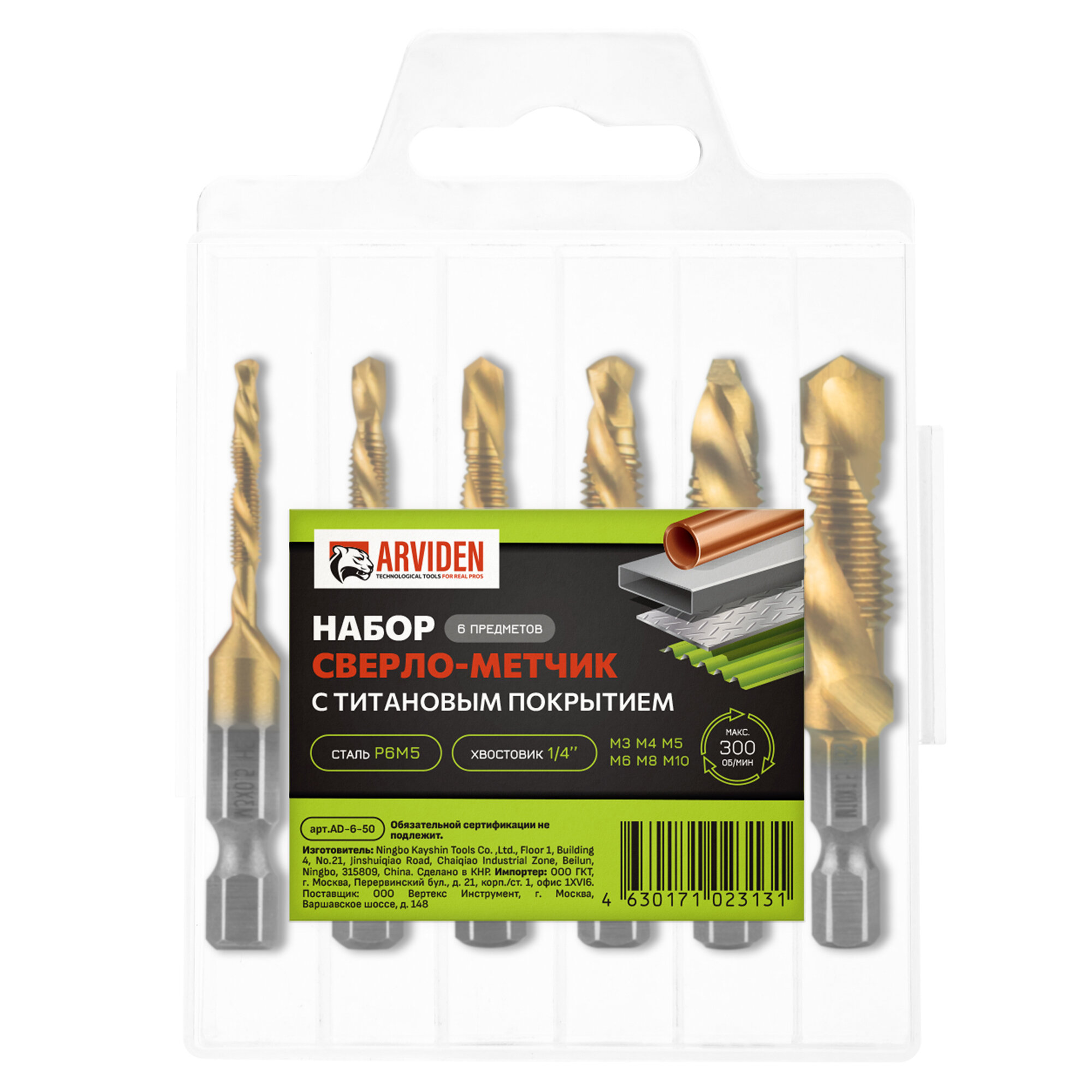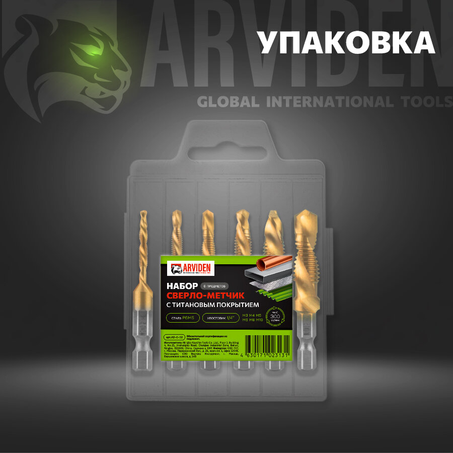 Набор сверл-метчиков с титановым покрытием из быстрорежущей стали, 3-10 мм. 6 штук интересное: