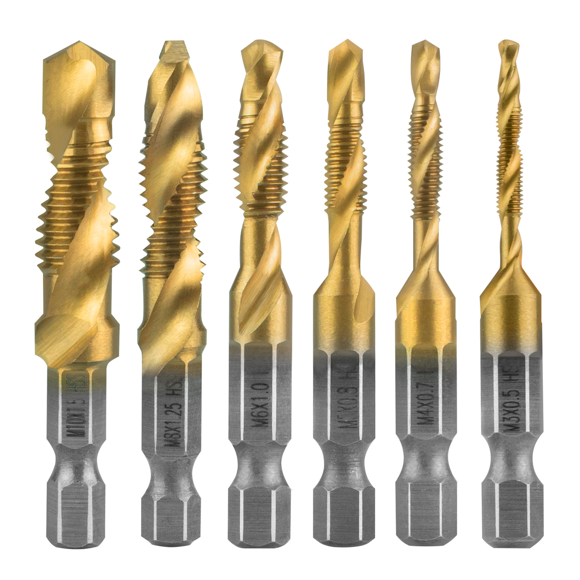 Купить Набор сверл-метчиков с титановым покрытием из быстрорежущей стали, 3-10 мм. 6 штук