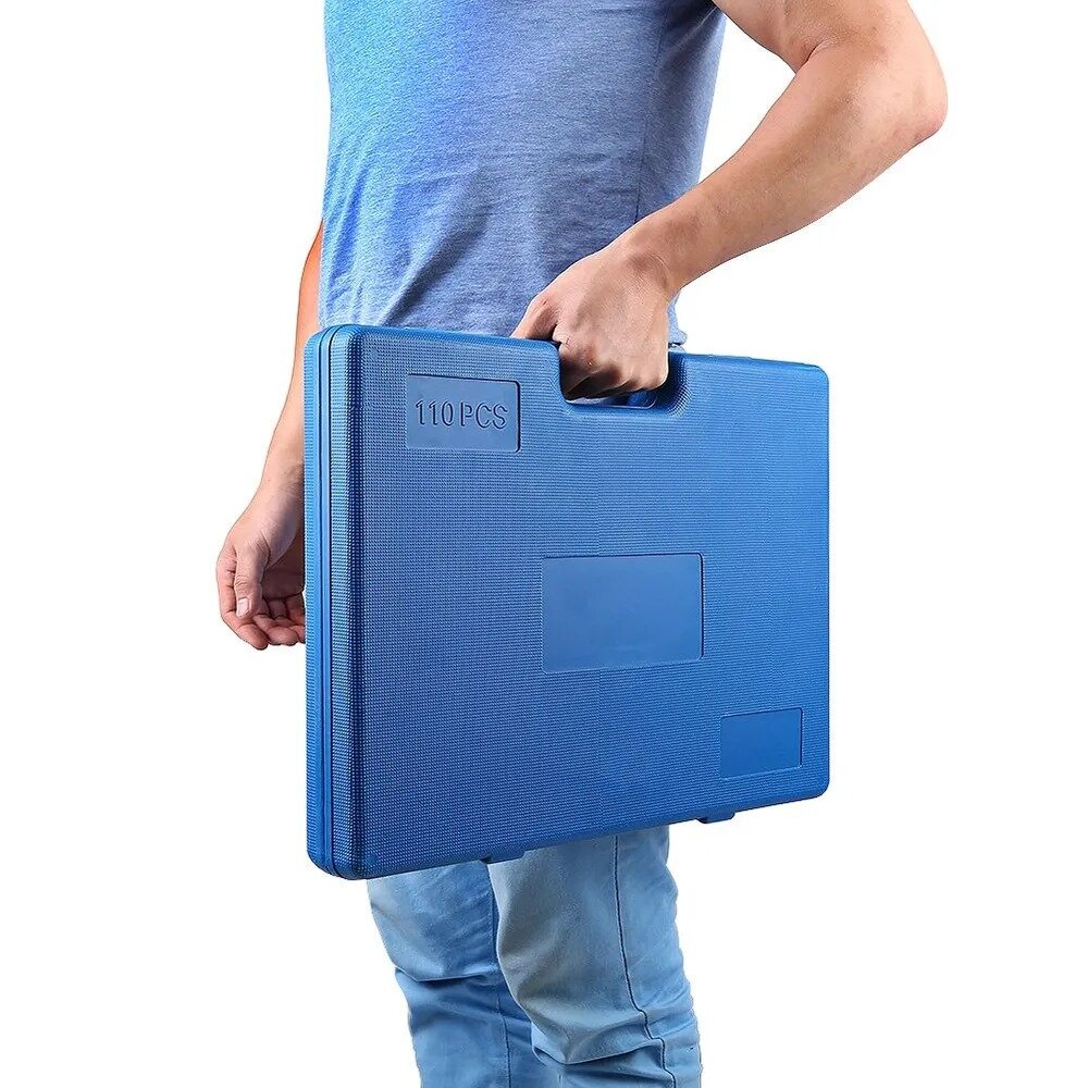 Купить Набор резьбонарезной метчиков и плашек 110 предметов в кейсе. По качеству LUXE инструментальная сталь.
