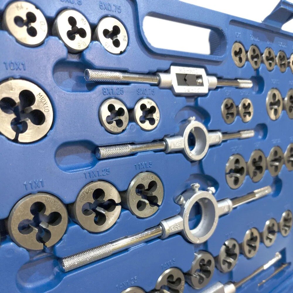 Набор резьбонарезной метчиков и плашек 110 предметов в кейсе. По качеству LUXE инструментальная сталь. интересное: