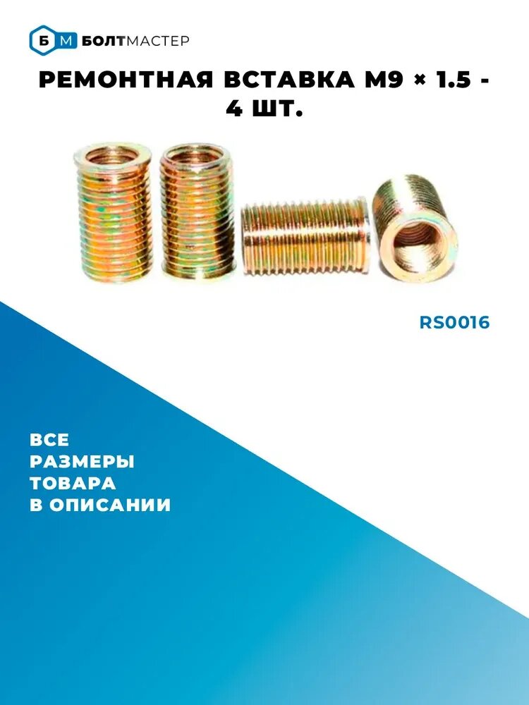 Ремонтная вставка 4 шт. внутр. диаметр М9х1.5 наружн. диаметр M12x1.25 интересное: