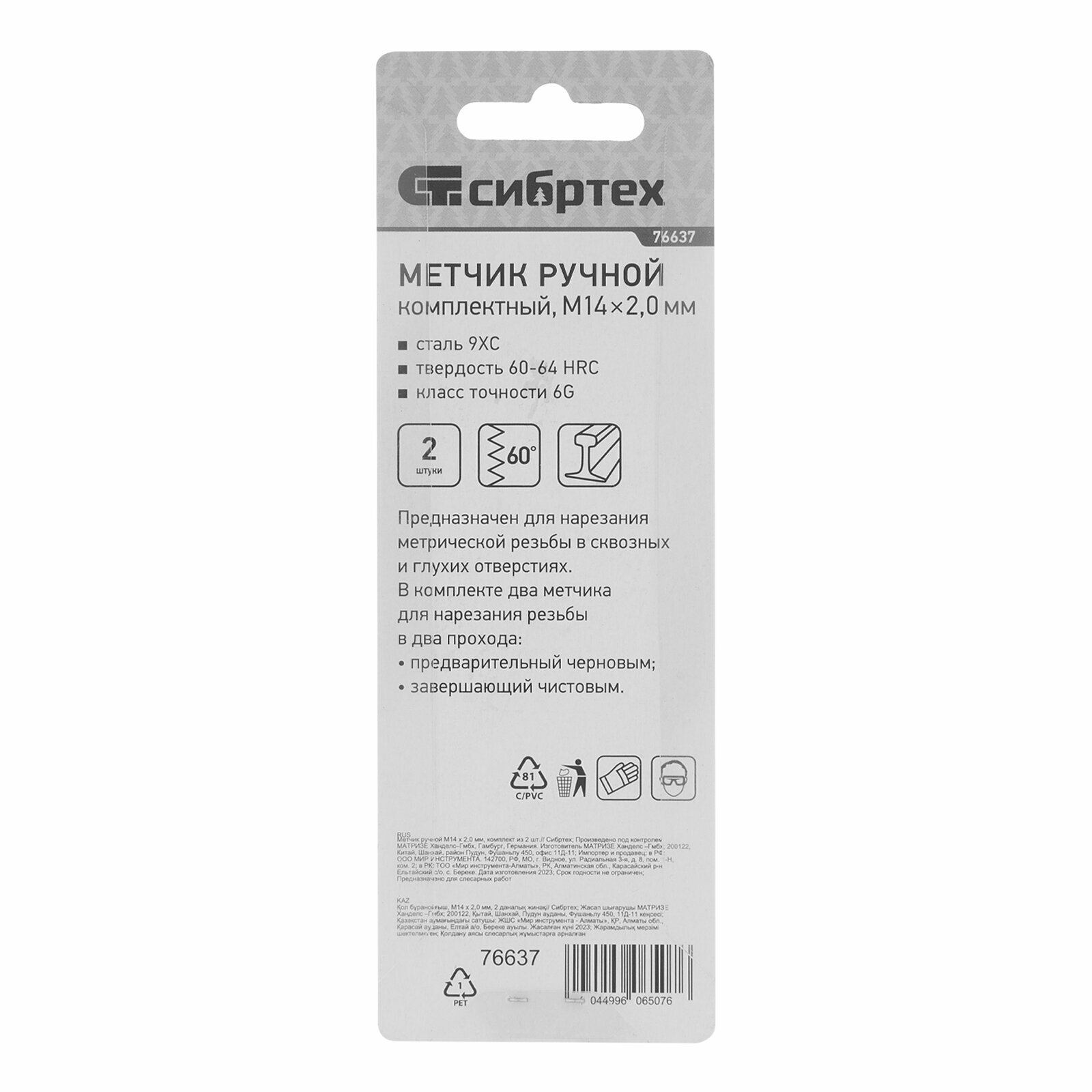 Метчик ручной Сибртех М14 х 2,0 мм, комплект из 2 шт 76637 интересное: