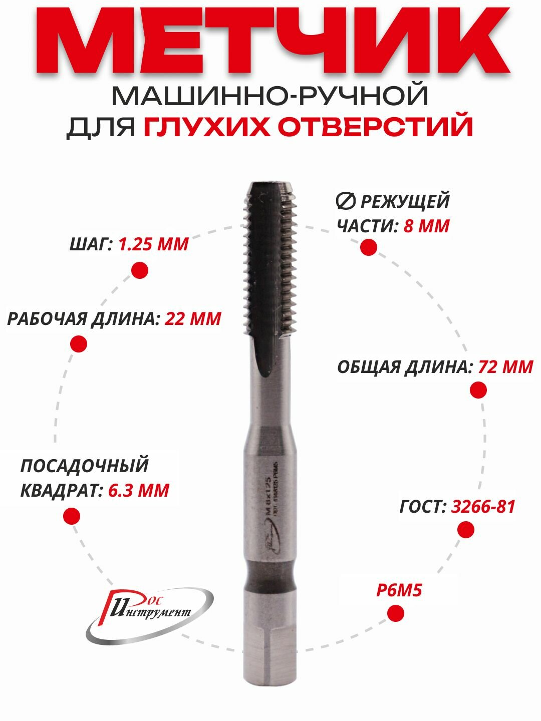 Купить Метчик машинно-ручной 8 х 1,25 ,1 штука для глухих отверстий, ГОСТ 3266-81 Р6М5