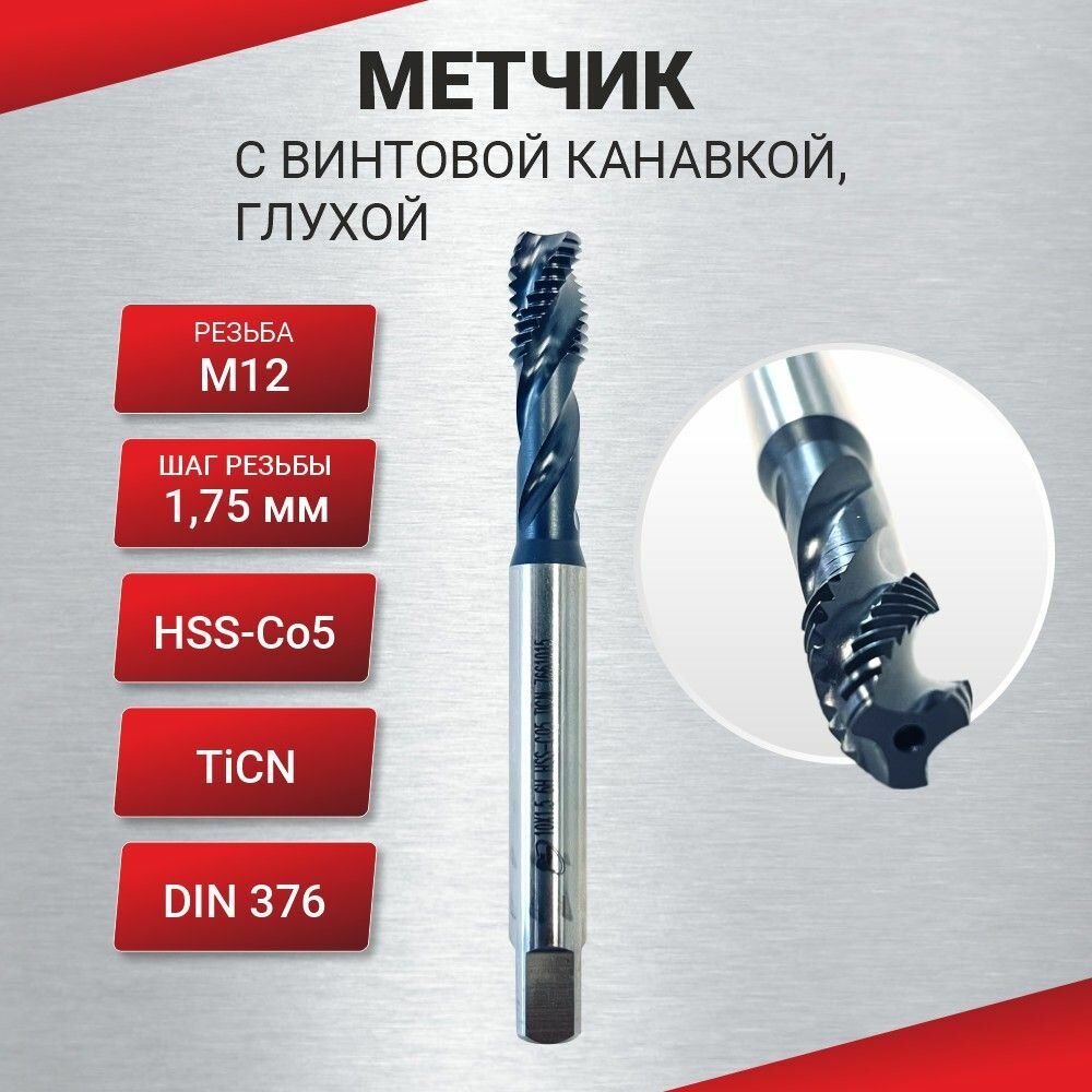 Купить Метчик с винтовой канавкой, глухой М 12х1,75 HSS-Со5 TiCN DIN376, шт