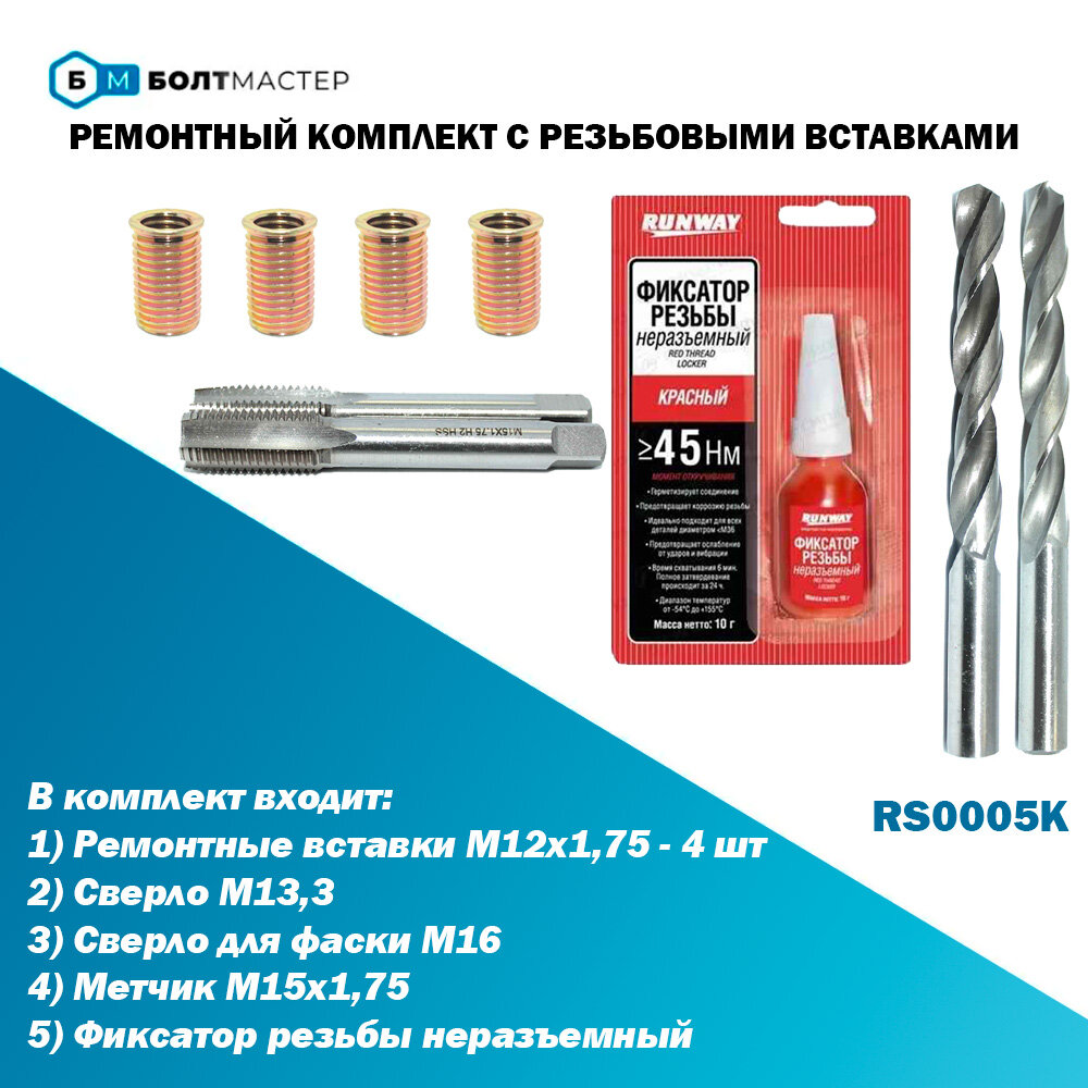 Ремонтный комплект из 4 шт. резьбовых вставок М12x1,75 с инструментом интересное: