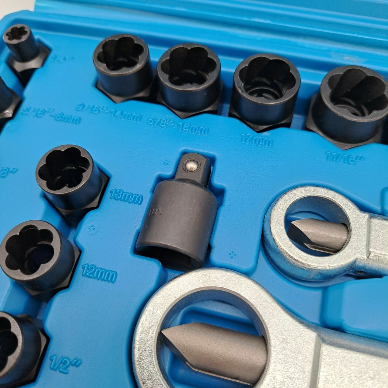 Купить Набор инструментов и экстракторов для поврежденных болтов и гаек 3/8" 28 предметов