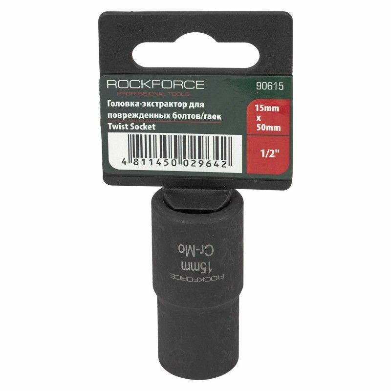 Головка-экстрактор для поврежденных болтов/гаек 15ммх50мм, 1/2", на пластиковом держателе ROCKFORCE интересное: