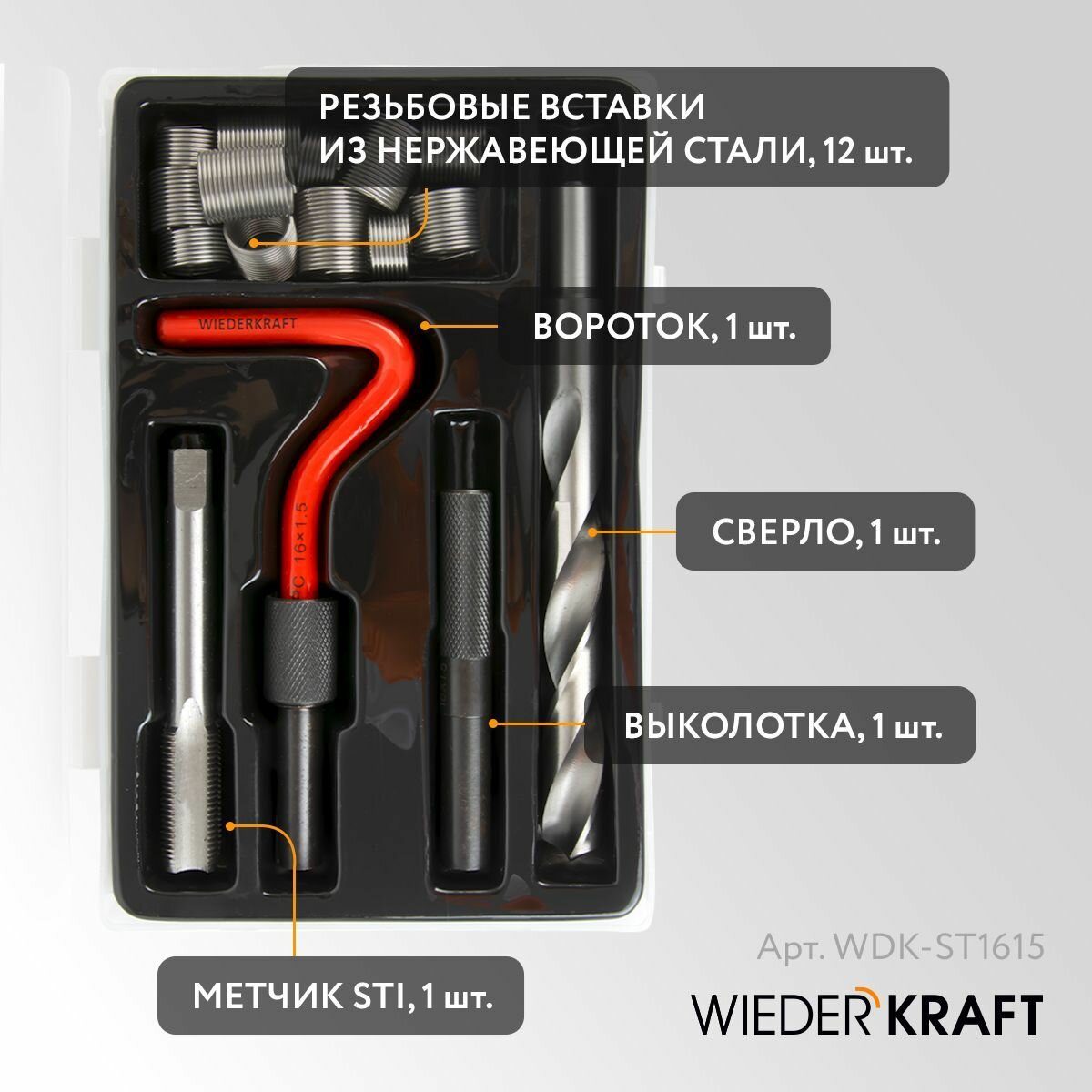 Купить Набор для восстановления резьбы M16X1,5, 16 предметов WIEDERKRAFT WDK-ST1615