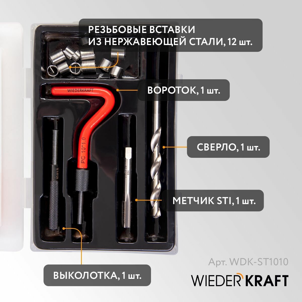 Набор для восстановления резьбы M10x1,25 , 16 предметов WIEDERKRAFT, WDK-ST1012