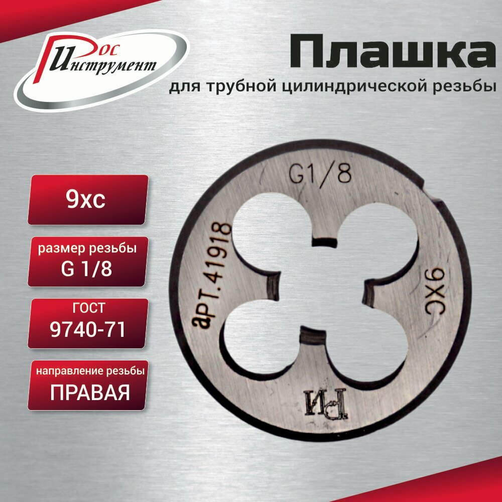 Купить Плашка G 1/8 для трубной цилиндрической резьбы, ГОСТ 9740-71 9ХС