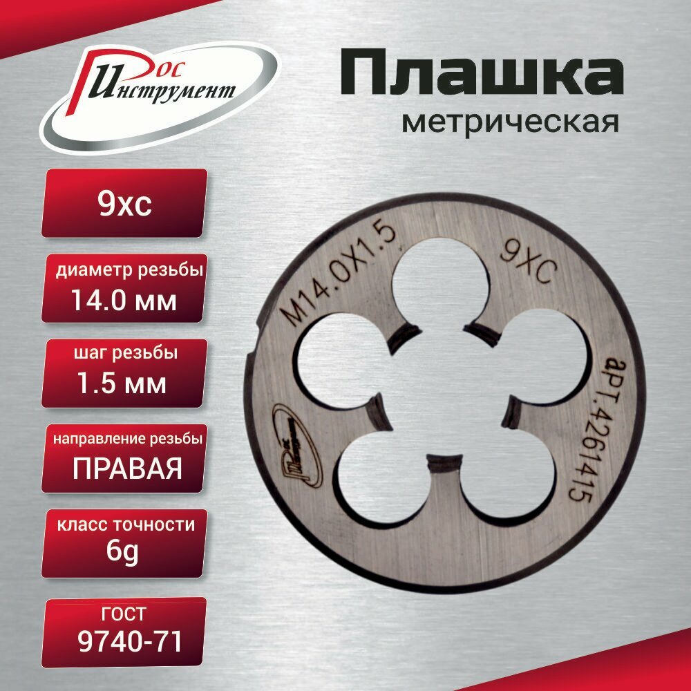 Купить Плашка М 14х1,5 ГОСТ 9740-71 9ХС