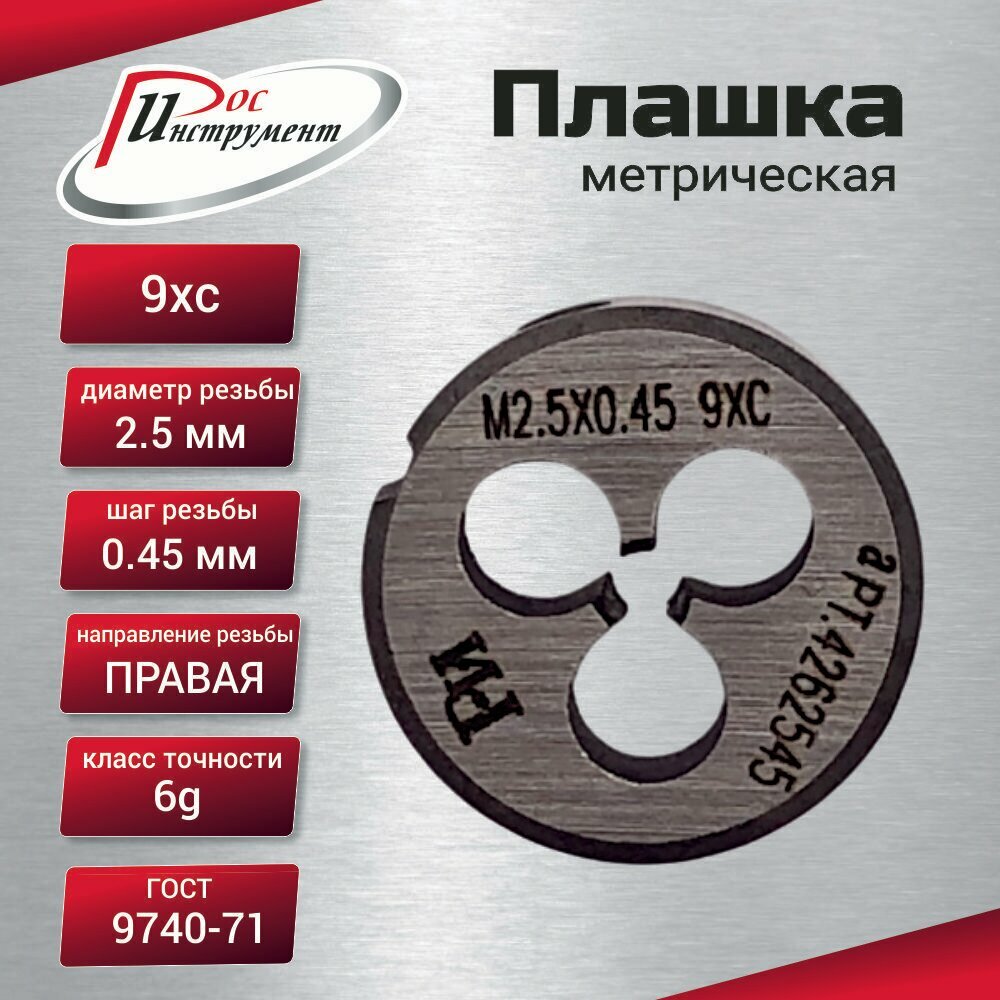 Купить Плашка М 2,5х0,45 ГОСТ 9740-71 9ХС